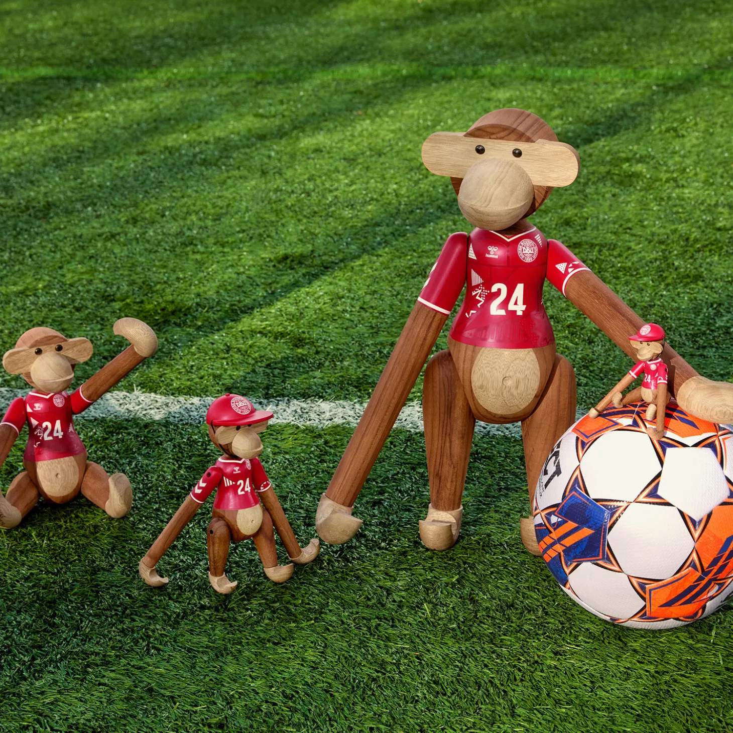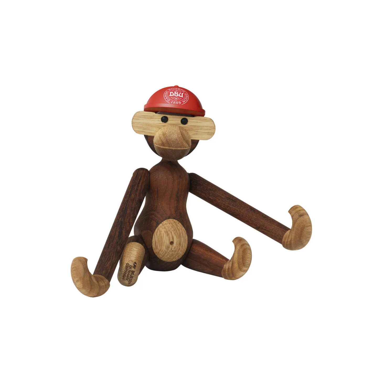 Spark sejren i hus med ikonisk design eller gør klar til fødselsdagsfest med Kay Bojesen Aben med en flot rød DBU-kasket på toppen. Med Kay Bojesen Abe x DBU er Kay Bojesen Denmark og Dansk Boldspil-Union gået sammen for at hylde sammenholdet og stoltheden over at stå sammen side om side ud fra et fælles mål om, at vi med humor, kreativitet og det gode håndværk kan samle og begejstre som en del af noget større. Og med denne flotte rødmalede kasket med DBU-logo trykt i hvidt får du lige det der ekstra festlige touch til alle dine store begivenheder, der kalder på både nationalfølelser og kærligheden til unikt dansk design. DBU-kasketten kommer i både denne størrelse på 7,5 cm i diameter, der passer perfekt på hovedet af Kay Bojesen Aben i den klassiske lille størrelse, og en lidt mindre udgave til miniaben. Kasketten er fremstillet i FSC®-certificeret bøgetræ, og som originalt tilbehør til alle fodboldfans og Kay Bojesen-supportere er den selvfølgelig formgivet i de enkle og elegante linjer, der kendetegner ethvert Kay Bojesen-design – og med det navnkundige DBU-logo i panden er du aldrig i tvivl om, hvem Aben holder med, når kampen fløjtes i gang.