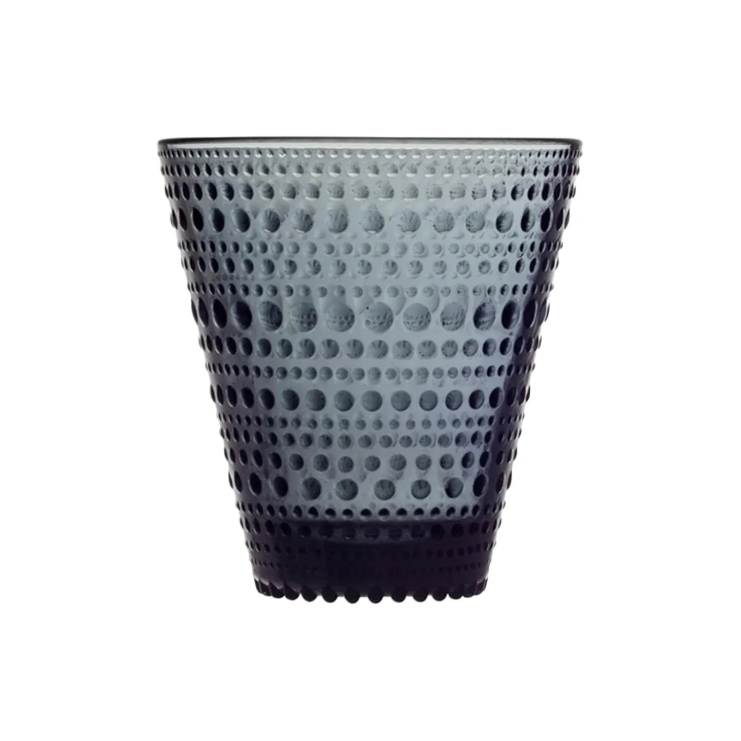 Kastehelmi (Finnish for “dewdrop”) by design legend Oiva Toikka features rings of glass bubbles designed to resemble strings of dewdrops glistening under the morning sun. Each piece plays with light in a way that showcases the reflective beauty of the glass. Iittala’s beloved Kastehelmi collection offers a wide range of versatile, tactile pieces that are both functional and decorative. The Kastehelmi tumbler is a classic example of everyday Finnish glassware. Delicate yet durable drinkware that suits any table. The new dark grey colour brings simple sophistication. Great for cold drinks and combined with other Kastehelmi pieces. The 2 pc glassware set makes a great gift. Made in Finland. Dishwasher safe.