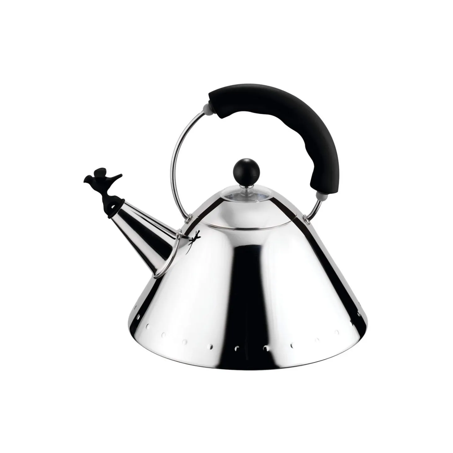 Kedel 9093 i blankpoleret rustfrit stål og nylon fra Alessi. Farve: sort. Mål: H: 22,5 x Ø 22 cm. Indeholder: 2 L. Design: Michael Graves.