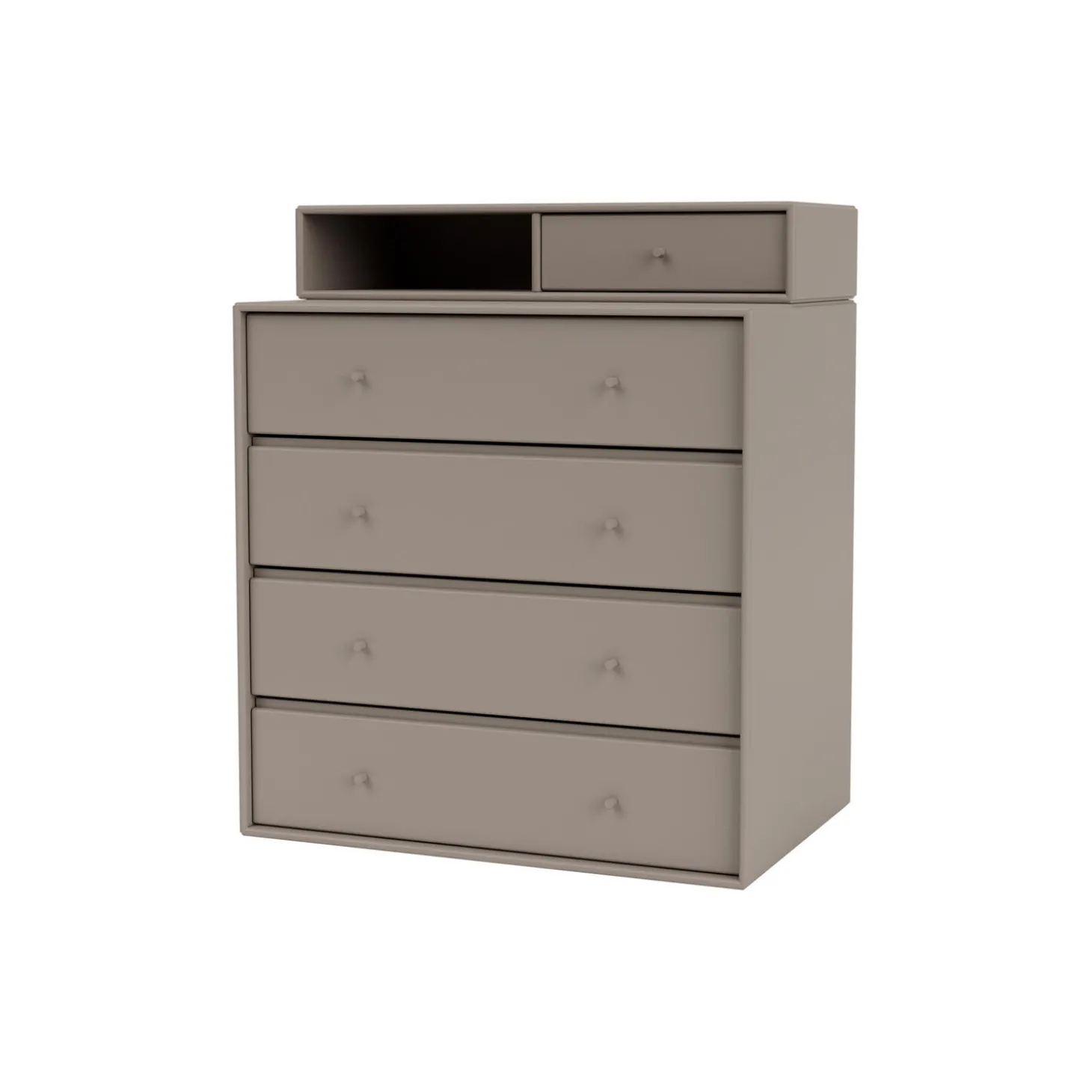 Opbevar dine smykker og personlige genstande i denne fine KEEP kommode, som er den ideelle opbevaringsløsning til soveværelset, stuen eller entréen. KEEP kommoden består af et skuffemodul med fire skuffer, og et mindre modul med en skuffe og et lille åbent rum. Kommoden er ideel til at skabe orden i soveværelset, stuen eller i entréen. Hvis der på sigt ønskes et nyt look, kan øverste hyldemodul let hænges for sig selv og kommoden bruges alene. Ophængsbeslag medfølger.