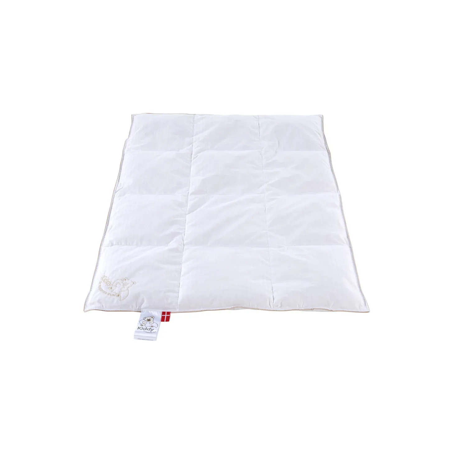 Kiddy Royal babydyne med 125 g moskusdun og vår i bomuldstwill fra Ringsted Dun. Farve: hvid. Mål: 67×100 cm. Bæreevne over 11.