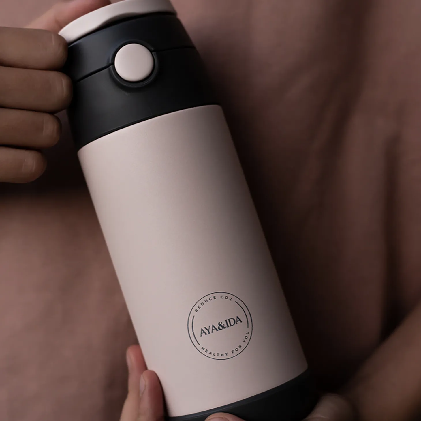 Termo drikkeflaske til børn med børnevenlige funktioner, der gør det let for vores børn at klare sig selv. Flasken åbnes med en let tryk på knappen. I låget er der en silikone sugerør, som er blød mod børnenes tænder. Flasken er udført i 1. klasses fødevaregodkendt rustfrit stål – 18/8. Holder drikke varm i op til 12 timer og koldt i op til 24.
