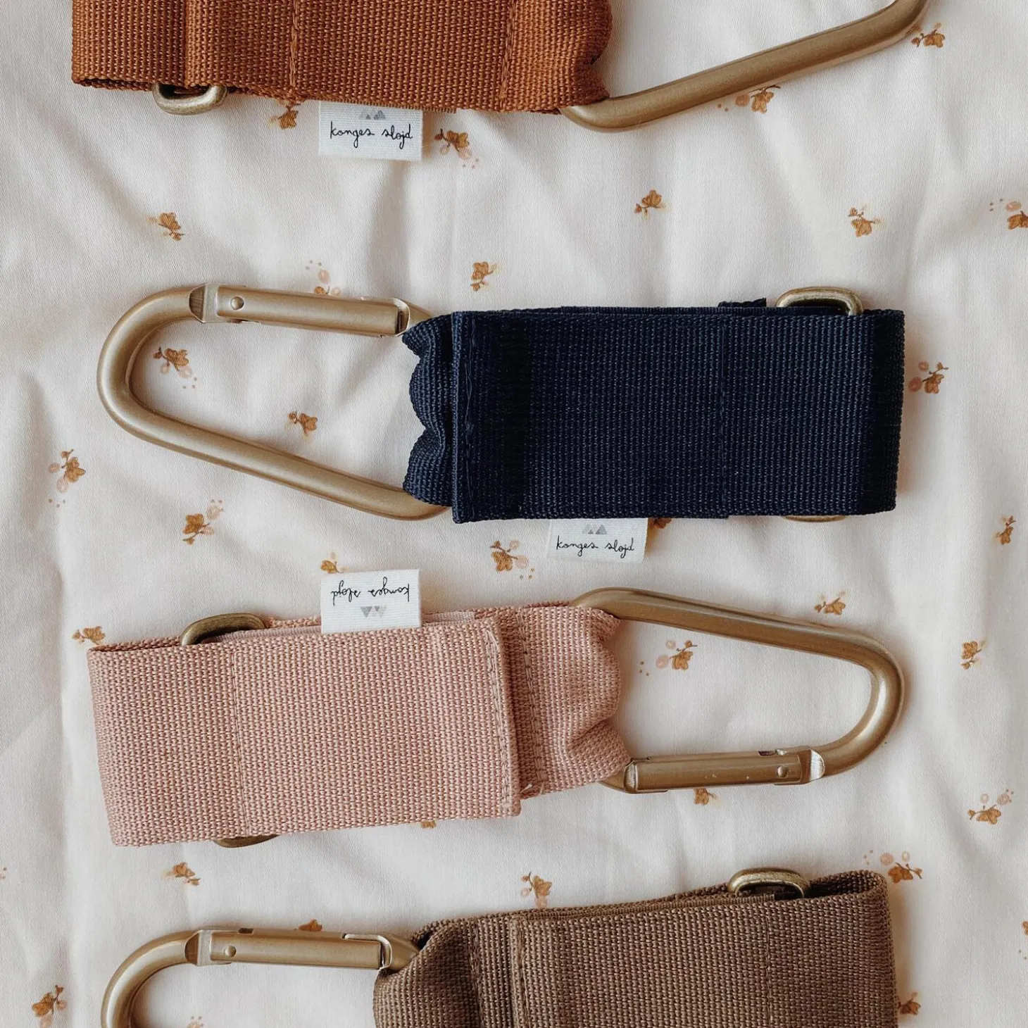 Vores 2-pak stropper til klapvognen fås i en række smukke farver, der ser så godt ud, når de matches med vores tasker til mor. Klapvognsstropperne kan bruges til at bære din taske på klapvognens håndtag, men de er også praktiske, hvis du har dagligvarer eller andre ting, du skal have med dig, når du slentrer rundt. Vælg mellem mange forskellige farver. Fremstillet af 100 % polyester, har metalbeslag og velcrolukning. ADVARSLER: Dette er IKKE et legetøj. Vaskeanvisninger: Tørres af med en fugtig klud.