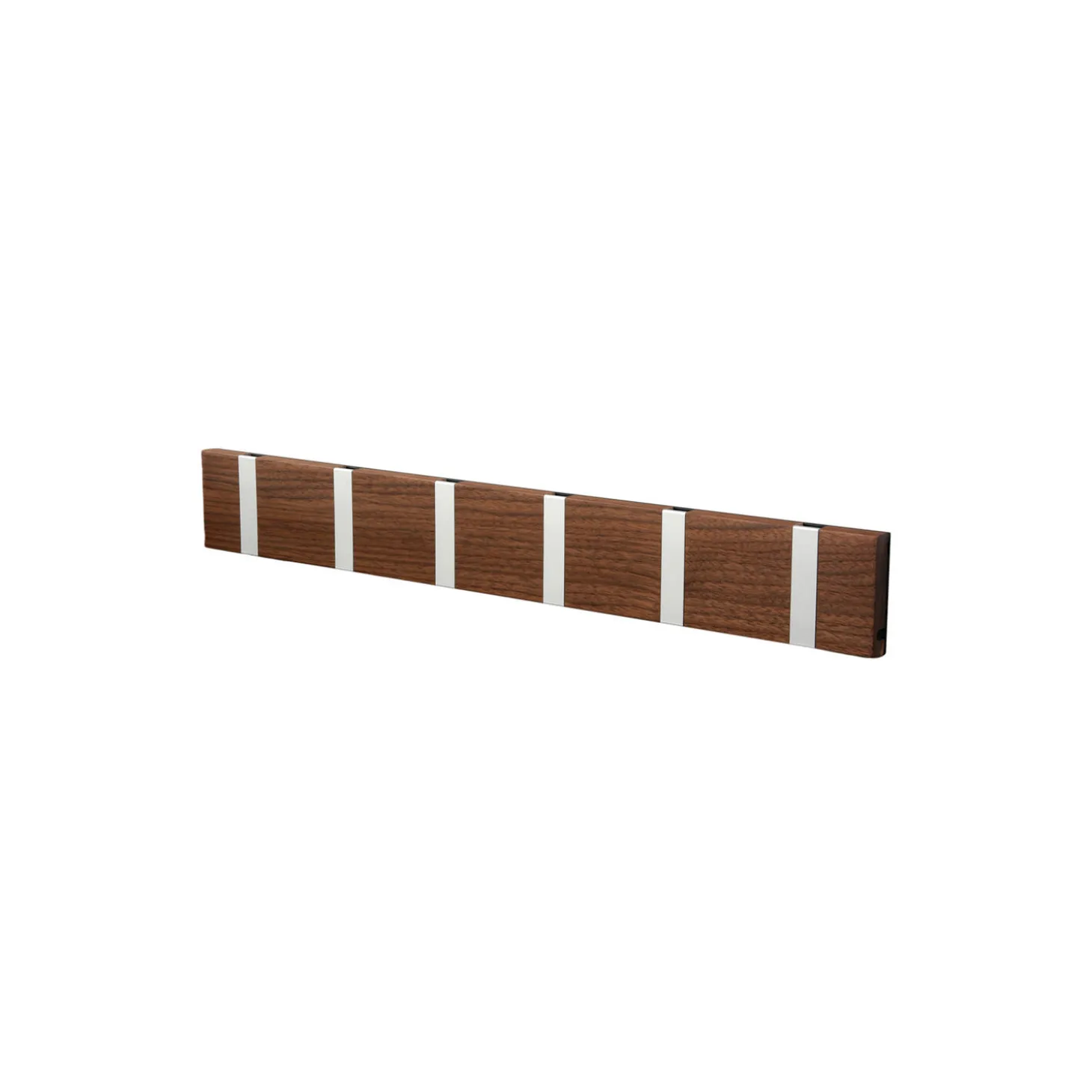 KNAX vandret 6 knagerække i olieret valnød fra LoCa. Farve: valnød/grå. Mål: H: 7,9 x L: 59,4 x D: 1,8 cm. Design: Harrit & Sørensen.