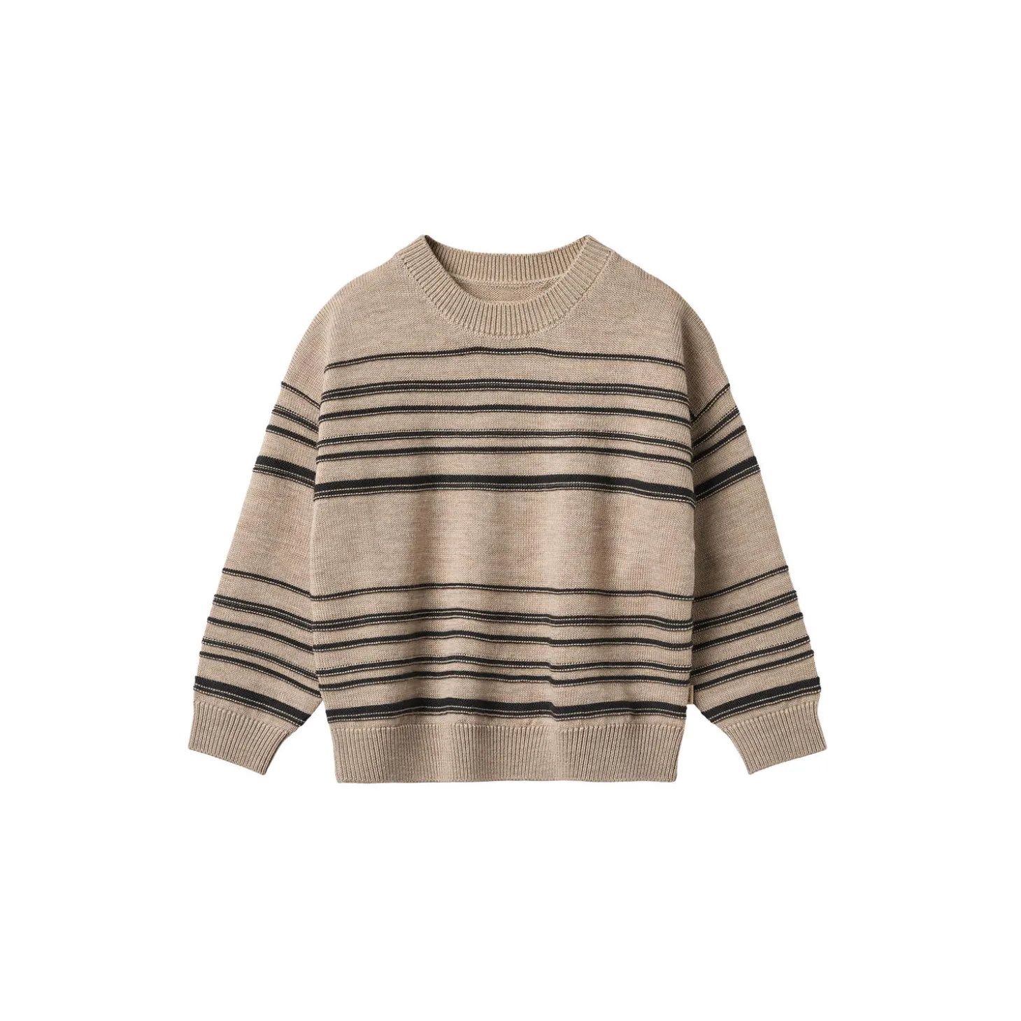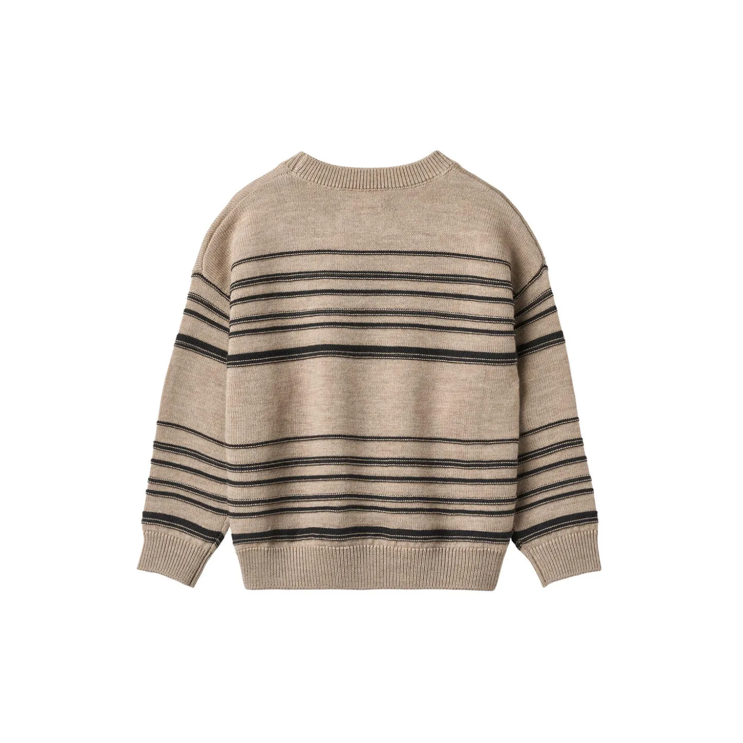 Long-sleeved knit pullover with stripes in soft merino wool for children. – Regular/loose fit- Dropped shoulders- Rib at the neckline and hems- StripedWheat’s knitwear is a true essential during the cold autumn and winter months, as it is soft and comfortable for your child to wear without any kind of itchiness. Our knits have a classic look with a relaxed fit that makes it easy to style with a pair of trousers or over a dress depending on the weather and occasion. —- Standard 100 by OEKO-TEX®- 100% Merino Wool