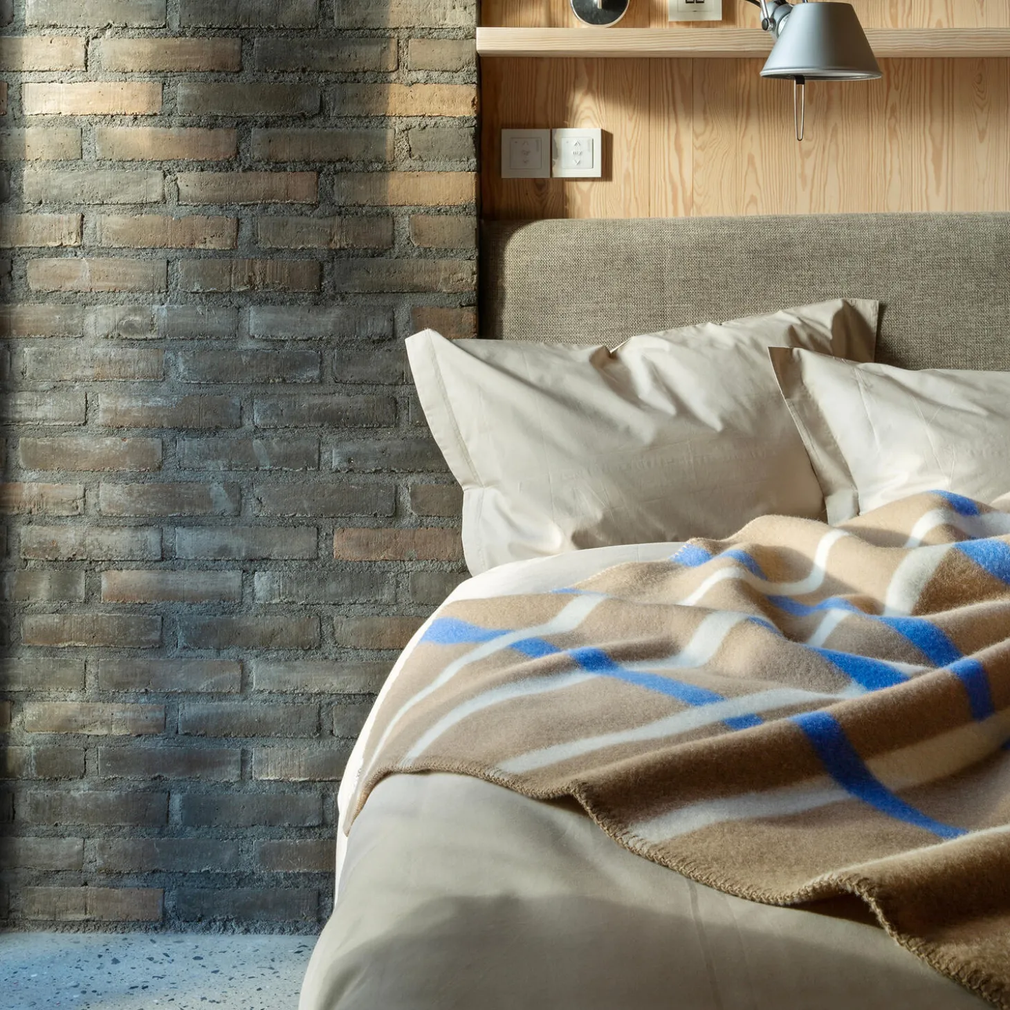 The Knut series draws inspiration from the most elementary process in weaving, the actual binding of the vertical and horizontal threads. The pattern is a tight and precise grid, drawn in saturated colours.
