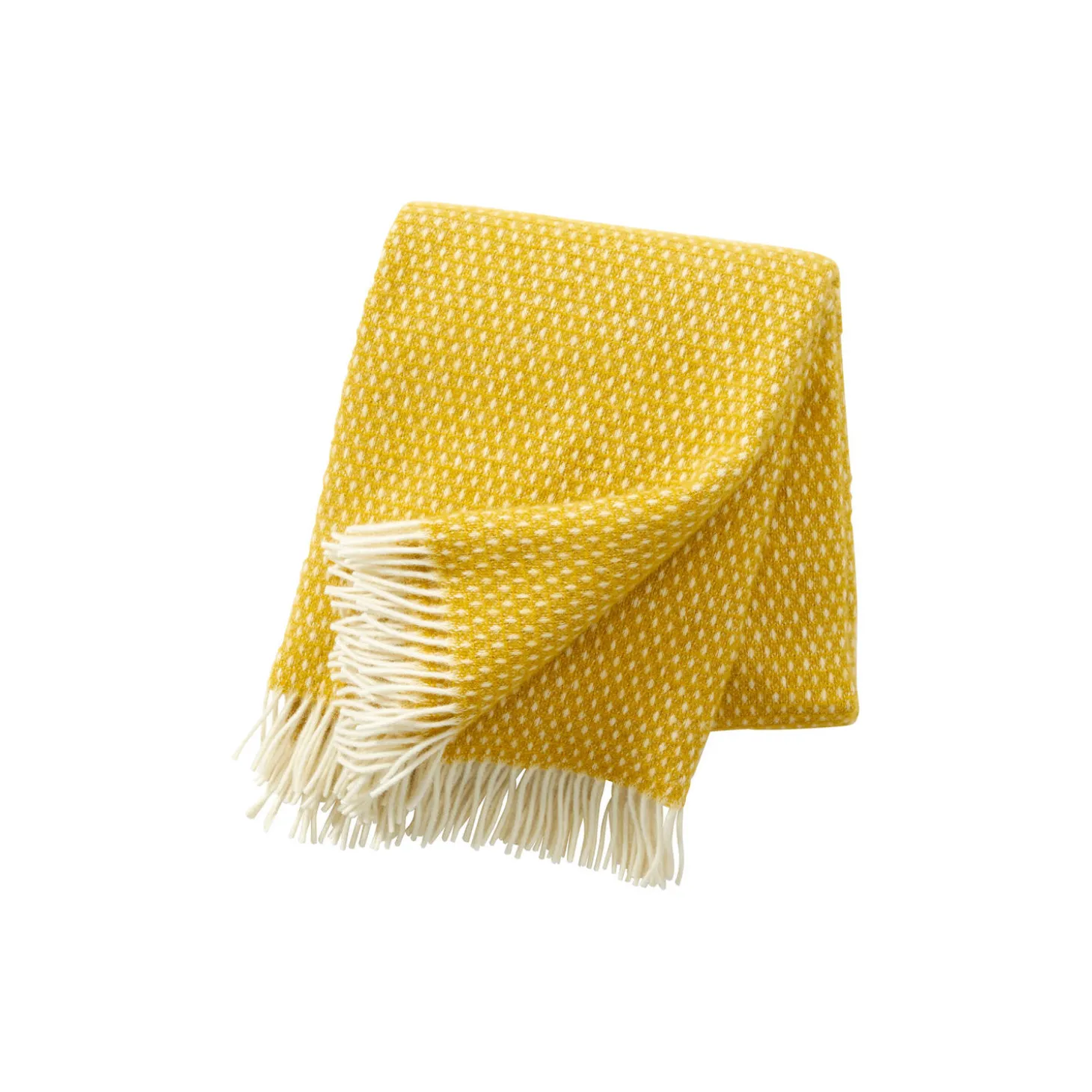 Knut Uld plaid i 100% lammeuld fra Klippan Yllefabrik. Farve: saffron. Mål: 200 x 130 cm.