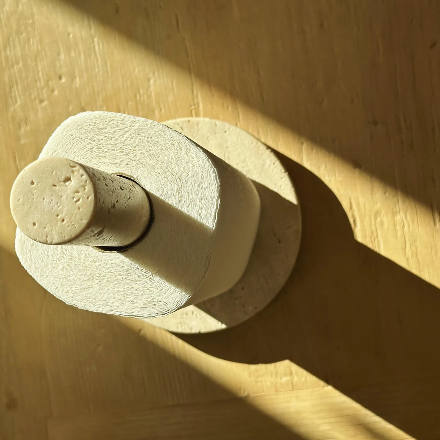 Køkkenrulleholderen fra HOEME i sandfarvet travertin adskiller sig fra klassiske køkkenrulleholdere i mere end én forstand. Med sine i 35 cm højde og en solide bundplade, giver køkkenrulleholderen elegance til enhver køkkenindretningsstil.