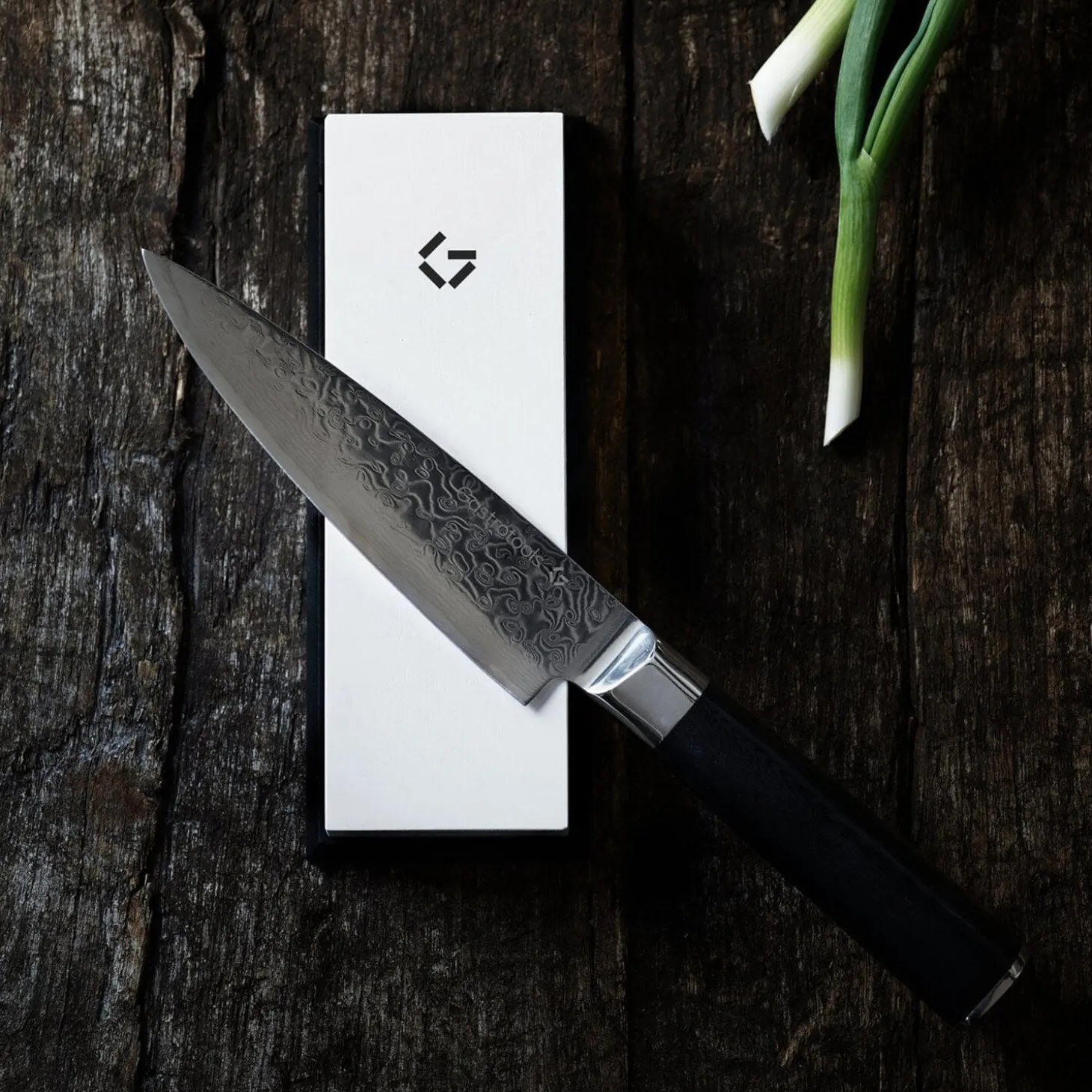 Kokkekniv i 67 lag japansk stål med kerne i vG10-stål fra Gastrotools. Knivblad: 15 cm.