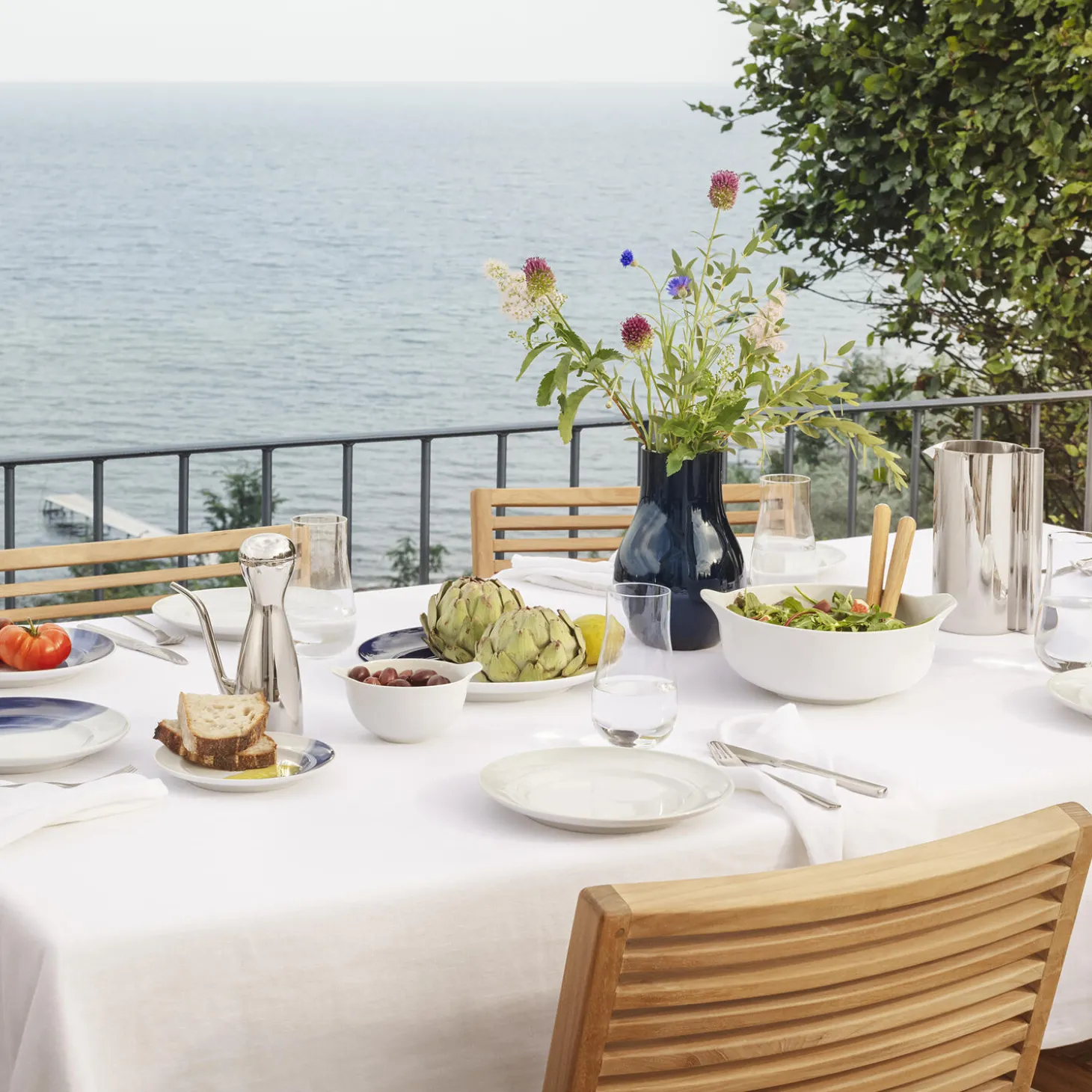 Denne enkle, elegante og funktionelle frokosttallerken i hvidt porcelæn blev første gang designet i 1960’erne af den anerkendte designer Henning Koppel, som samarbejdede med Georg Jensen gennem mange år. Tallerkenen er en del af et elegant service sæt, som var Henning Koppel’s første design i porcelæn. Nu vækket til live igen af Georg Jensen med sine originale smukke harmoniske linjer. Frokosttallerkenen er ideel til hverdagens måltider og giver borddækningen et strejf af elegance.