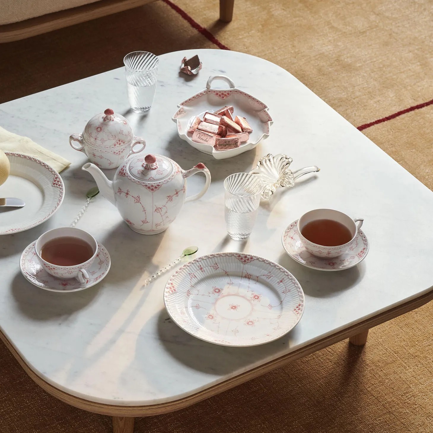 Dæk frokostbordet med den smukke Koral Musselmalet Halvblonde tallerken på 22 cm. Tallerkenen er alsidig i sin størrelse og dens håndmalede kanvas vil danne rammen om alt fra hverdagsfrokoster til særlige anledninger.