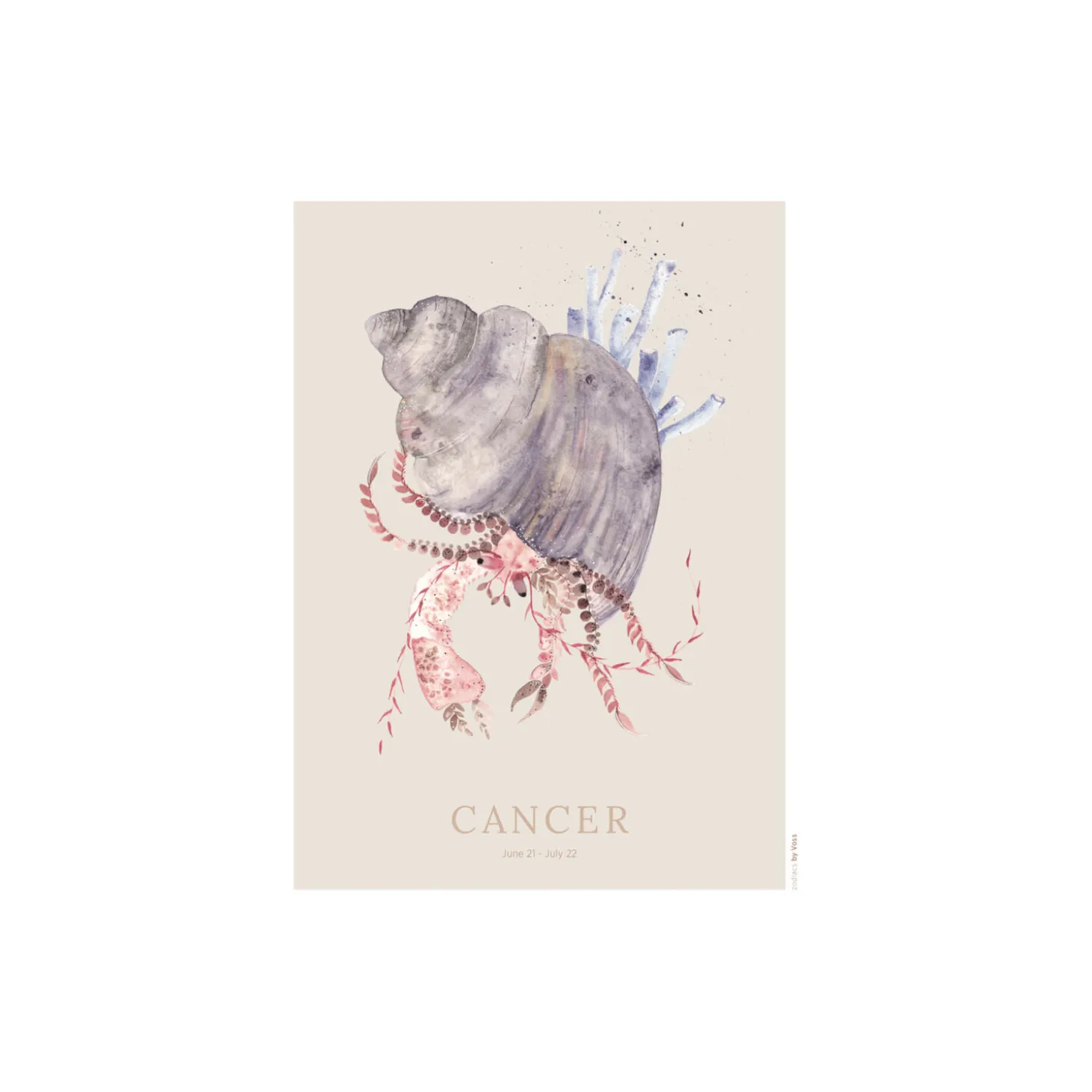 Krebsen plakat fra All by Voss. Plakatdesign med grafik (tekst) og beige flade under motiv, med trykt hvidt passepartout. Originalen er scannet i høj opløsning for bedst muligt gengivelse. Produceret i Danmark.
