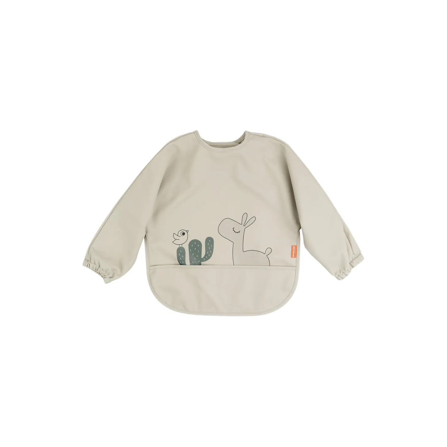 Lalee hagesmæk med ærmer i 100% polyester med PU-belægning fra Done By Deer. Farve: sand. Mål: 34×72 cm.