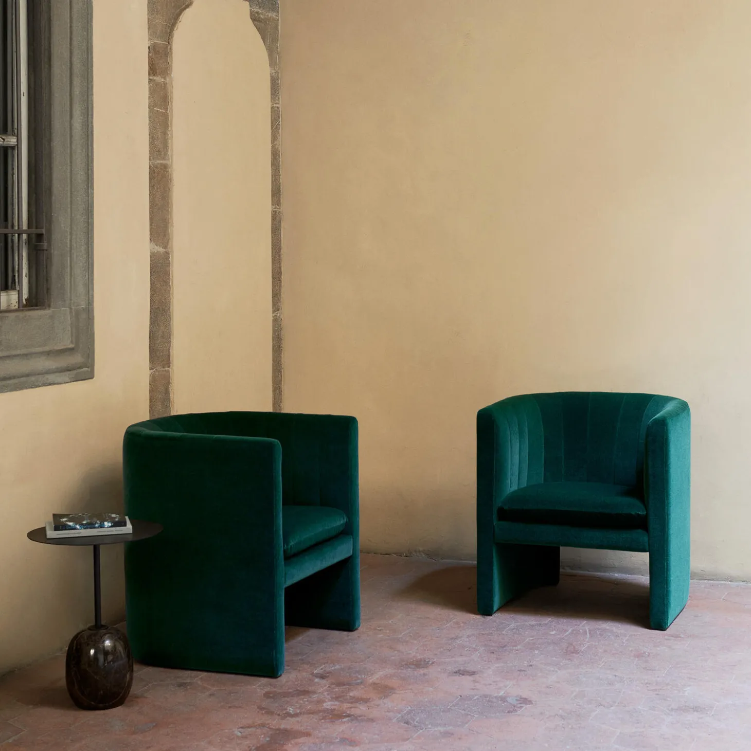 - Materiale: Verde Alpi marble and powder coated steel