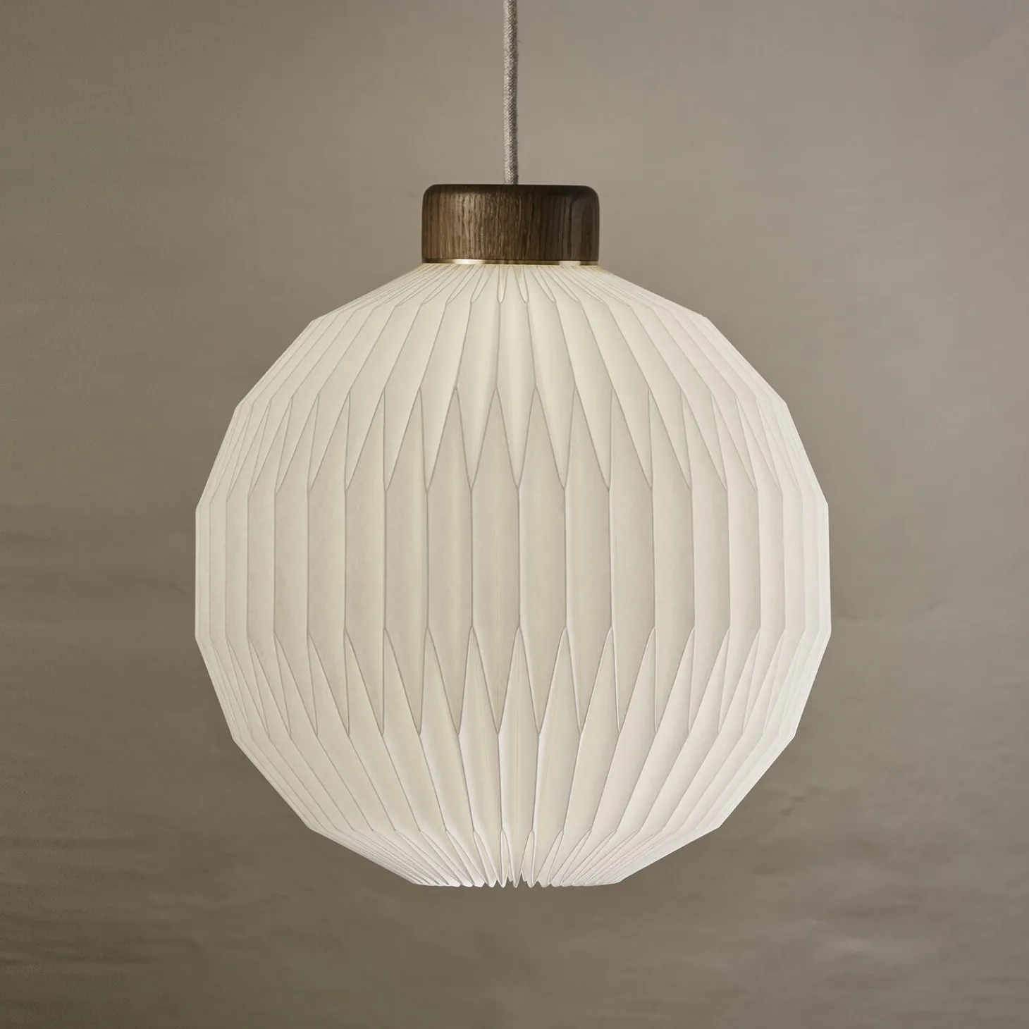 Le Klint 180 pendel med standardskærm i røget eg og messing med skærm i plastfolie fra LE KLINT. Farve: røget eg. Mål: H: 35 x Ø 33 cm. Lyskilde: maks. 20W LED E27. Design: Esben Klint.