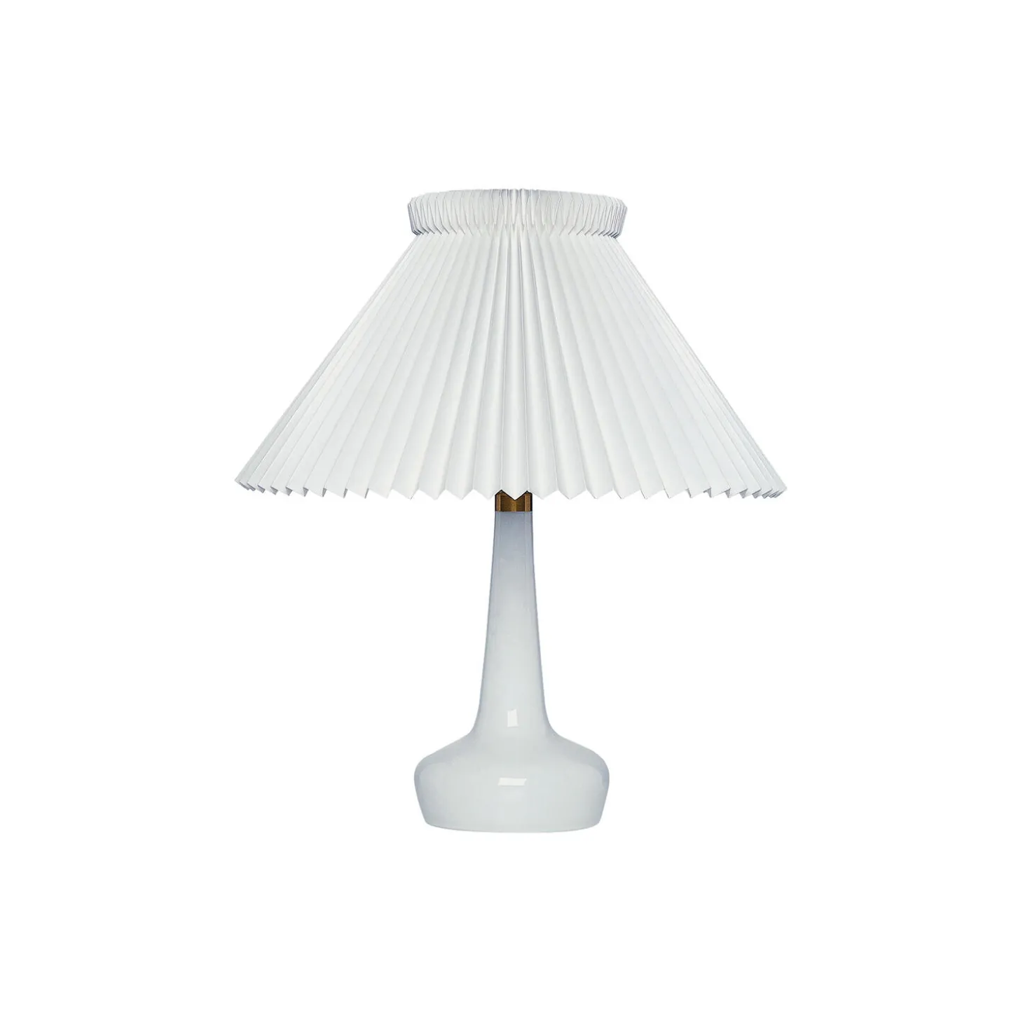 LE KLINT 311 bordlampe med 1/23 skærm i håndfoldet plast og lampefod i glas fra LE KLINT. Farve: hvid/messing. H: 48 x Ø 38 cm. Lyskilde: maks. 40W E27. Design: Esben Klint.