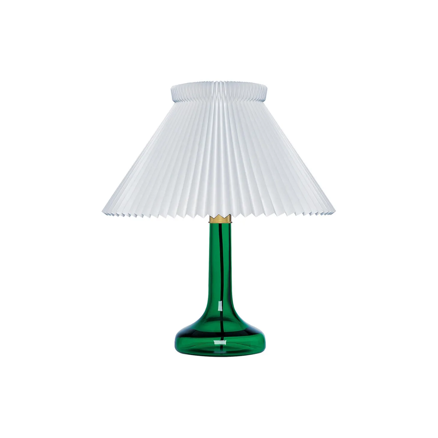LE KLINT 343 bordlampe med 1/23 skærm i håndfoldet plast og lampefod i glas fra LE KLINT. Farve: grøn. H: 48 x Ø 40 cm. Lyskilde: maks. 40W E27. Design: Billman-Petersen.