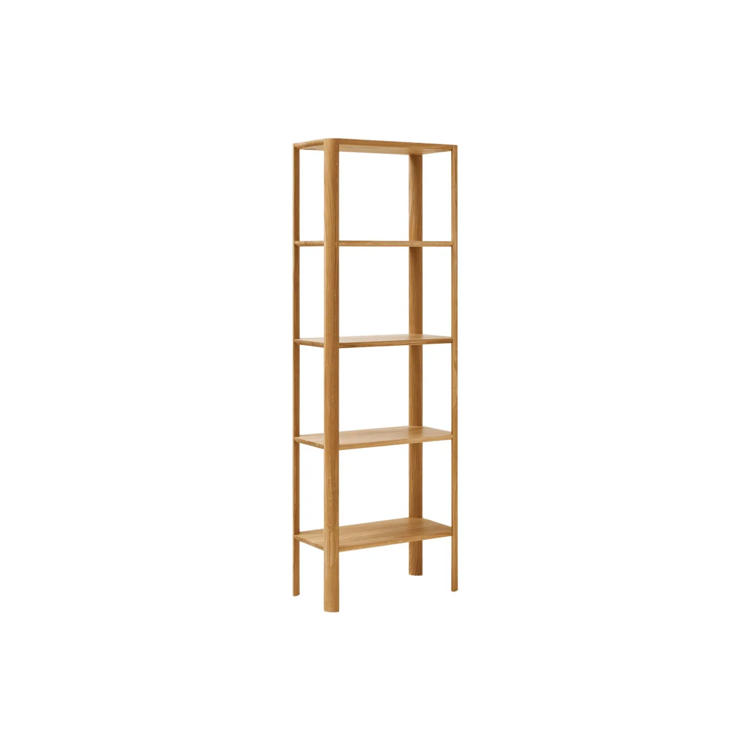 Leaf Shelf er et hyldesystem, der forener æstetik, stabilitet og funktionalitet på en enkel og elegant måde. De organiske, bladformede ben er systemets visuelle centrum, og med deres rene, skulpturelle udtryk tilføjer de en raffineret og moderne fornemmelse til ethvert rum.Konstruktionen bryder med traditionelle metoder, da hylden er helt lukket og uden synlige skruer eller ekstra stabiliserende dele. Dette giver en imponerende stabilitet og et minimalistisk, sammenhængende design.Det alsidige design betyder, at hylden ser fantastisk ud fra alle vinkler, og derfor kan bruges både som skænk, fritstående hyldesystem eller som en rumdeler.