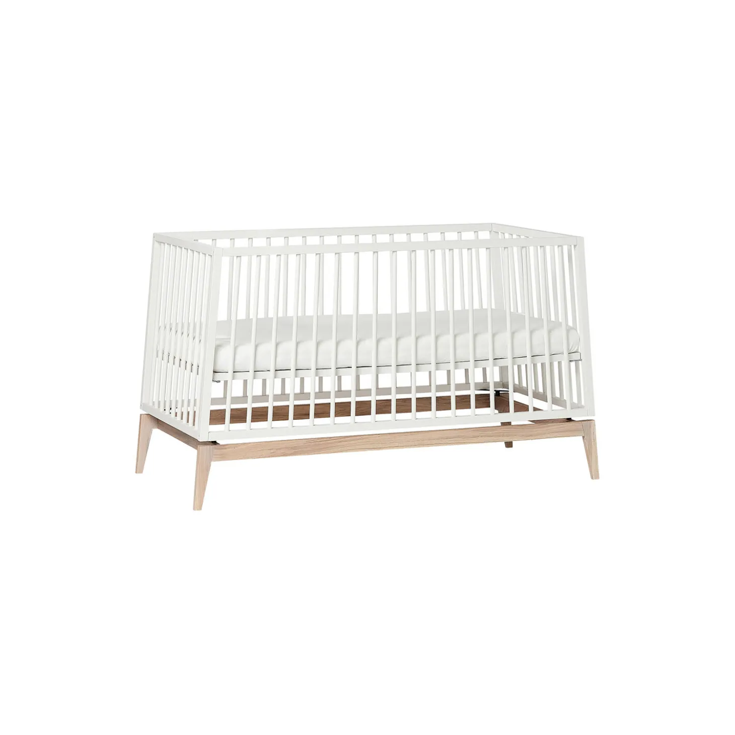 Let og svævende – det er tankerne bag Leander Luna™ babysengen. Sengens skrå linjer og den elegante konstruktion giver en ubesværet lethed, der er kendetegnende for nordisk design.Babysengen har et fleksibelt design, der vokser med dit barn. Brug tremmesengen med løftet bund og høje gavle de første måneder. Det vil skåne din ryg, når du skal putte din baby. Når dit barn begynder at kunne rejse sig, anbefaler vi, at du sænker bunden. Når der ikke længere er brug for tremmesiderne, kan du tilkøbe et smart modul, der forvandler babysengen til en åben seng med sengehest eller en lille, hyggelig sofa.Skab en hyggelig stemning på børneværelset med bløde tekstiler. I Leander Luna™ serien finder du sengerand, lagner og sengetøj i afstemte og stilrene farver, der tilfører varme og personlighed til indretningen.Giv dit barn optimal liggekomfort og ventilation med en original Leander Luna™ madras (140×70 cm).Ombygningssæt til Leander Luna™ babyseng Vores praktiske Luna™ ombygningssæt (separat tilkøb) gør det muligt at udskifte den ene tremmeside og dermed skabe enten en juniorseng med eller uden sengehest eller barnesofa.OBS: Sengen kan ikke bruges, hverken som åben seng eller sofa, uden brug af ombygningssættet.