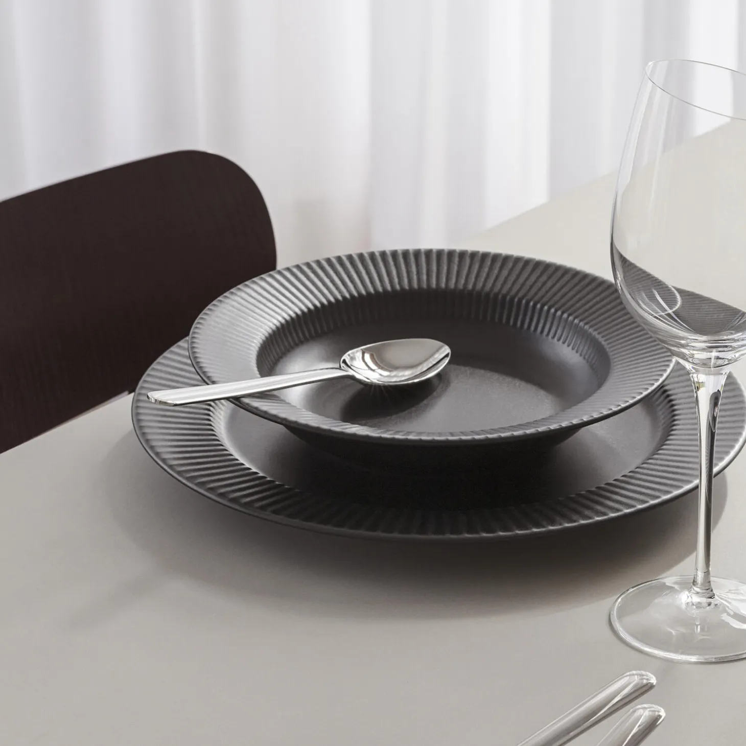 Dæk et smukt middagsbord med de elegante middagstallerkener, hvis rillede design indrammer og fremhæver maden. Legio Nova Black er en genfortolkning af det populære Legio Nova stel med en matsort finish inspireret af det rustikke, nordiske køkken. Med sit mørke farveunivers og de karakteristiske riller tilføjer stellet en spændende kontrast og dybde til enhver bordopdækning. Stentøjet er af højeste kvalitet og kan tåle alt fra ovn og fryser til mikrobølgeovn og opvaskemaskine. Legio Nova stellet er dækket af en 10-års garanti (scan QR-kode for mere information).