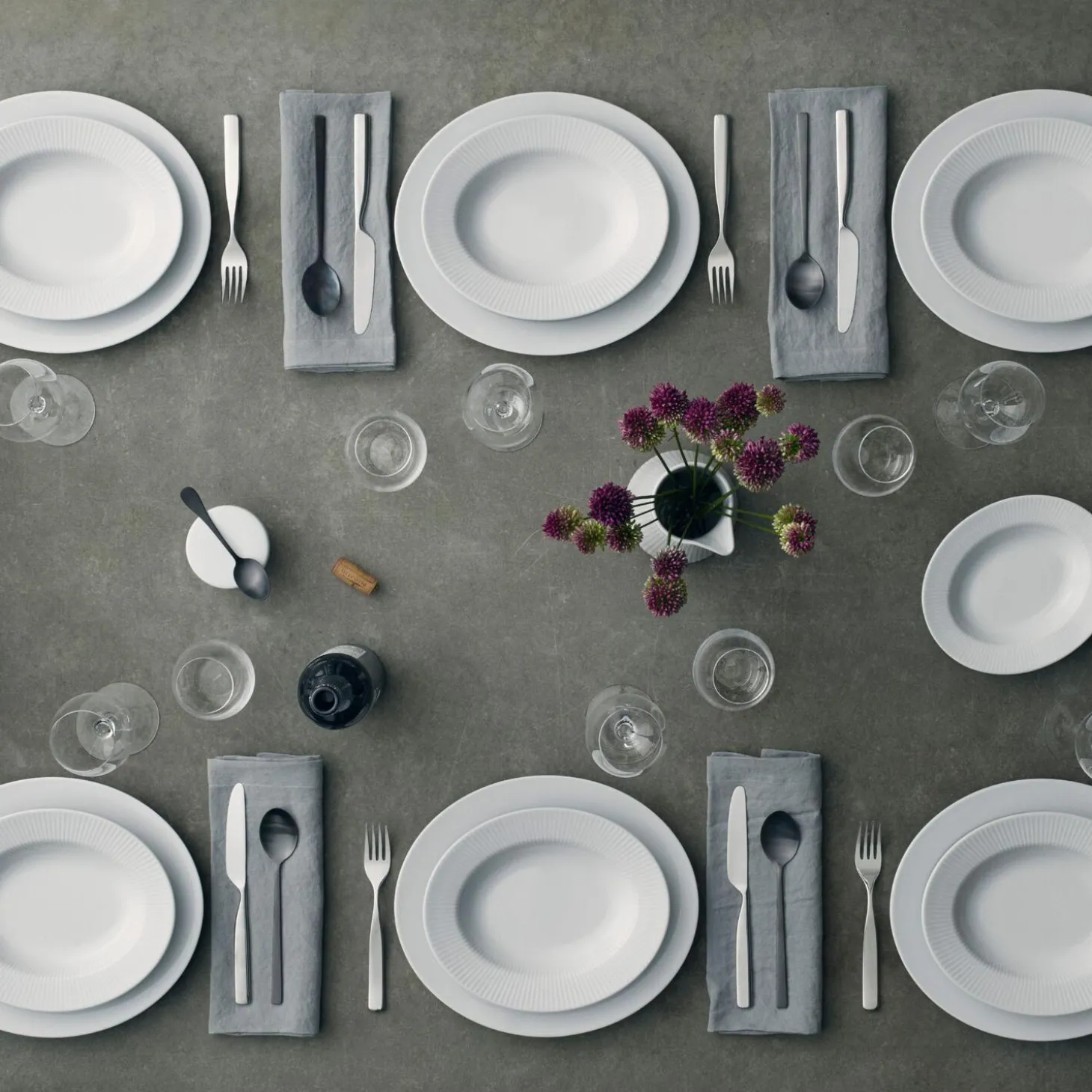 Hvor Legio’s formsprog er absolut minimalistisk, er Legio Nova designet med riller, der raffineret danner rammen om maden. Eva Trio er sponsor af det danske kokkelandshold, og i designprocessen er der fundet inspiration i at se deres madkunst, og den omhu de lægger i deres håndværk. Derfor indrammes tallerkenens midte af elegante riller der fremhæver anretningen.