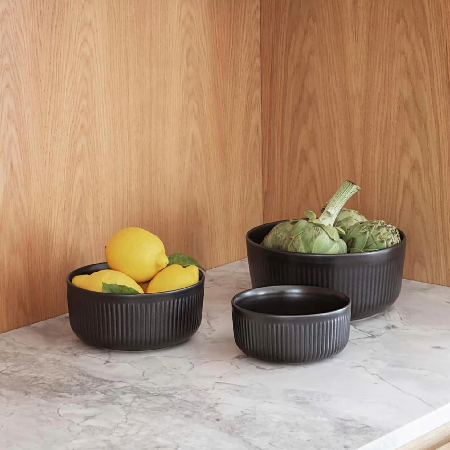 Skålen danner elegant ramme om enhver anretning. Den pynter og er praktisk på det store middagsbord såvel som på køkkenbordet i dagligdagen. Brug den til servering af salat, pasta, grøntsager eller som frugtskål. Legio Nova Black er en genfortolkning af det populære Legio Nova stel med en matsort finish inspireret af det rustikke, nordiske køkken. Med sit mørke farveunivers og de karakteristiske riller tilføjer stellet en spændende kontrast og dybde til enhver bordopdækning. Stentøjet er af højeste kvalitet og kan tåle alt fra ovn og fryser til mikrobølgeovn og opvaskemaskine. Legio Nova stellet er dækket af en 10-års garanti (scan QR-kode for mere information).