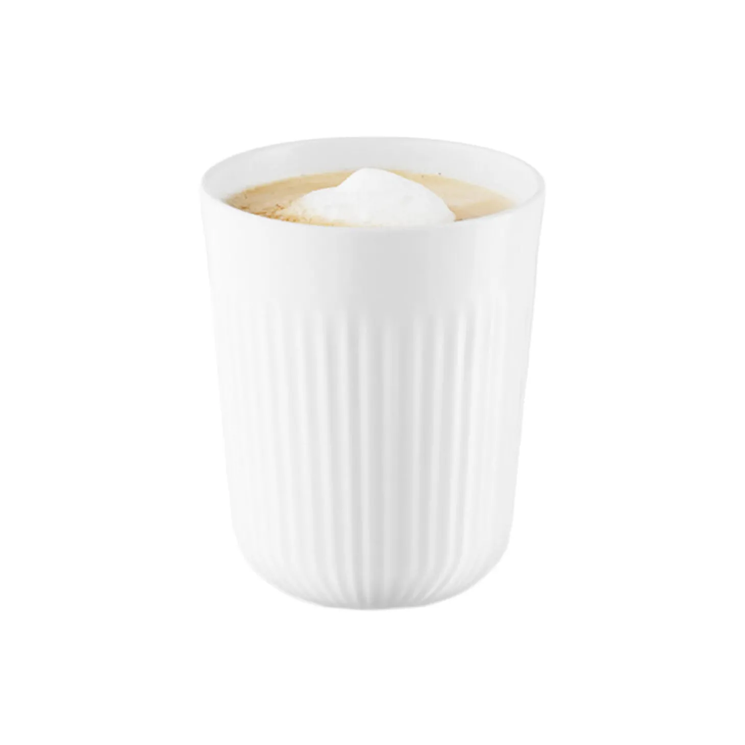 Legio Nova termokrus er af porcelæn i høj kvalitet og udstyret med dobbelte vægge, som sikrer optimal termoeffekt. På den måde holder kruset godt på varmen, uden at man brænder fingrene. Fremstillet i porcelæn. Kan anvendendes i ovn og mikroovn. Tåler fryser og maskinopvask.