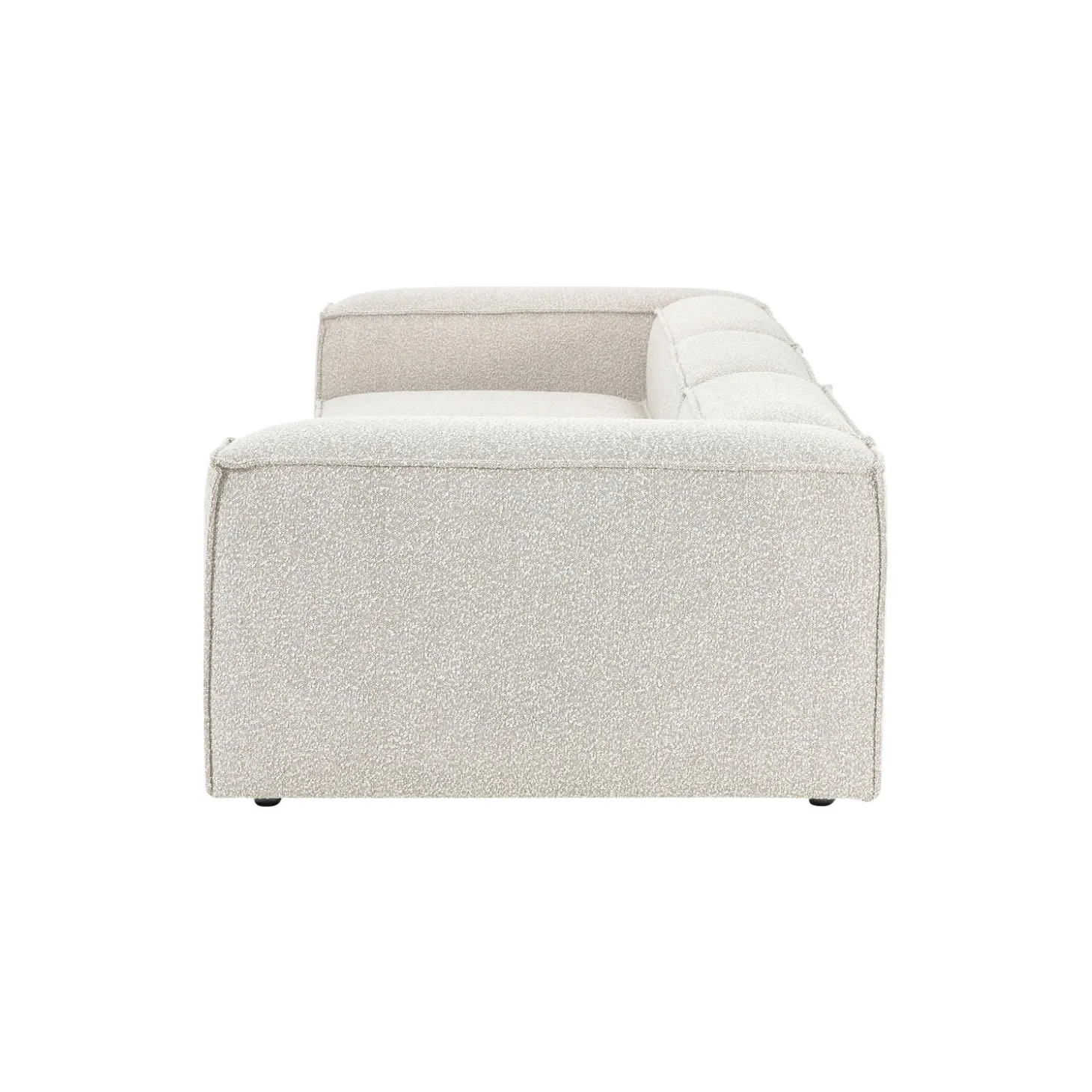 Loungesofa med ekstra stor siddeplads. Bestående af tre individuelt kombinerbare moduler. Modulær: Med et nemt kliksystem kan den kombineres og udvides helt efter ønske. Meget slidstærkt og let at pleje bouclé-stof, tilgængeligt i mange farvevarianter. Fremstillet i Europa. Den slidstærke bouclé-betræk er testet med 100.000 slidcyklusser ifølge Martindale-testen. På grund af den høje slidstyrke er tekstiler med en Martindale-værdi fra 80.000 særligt holdbare. Materialet anvendt i dette produkt er testet for skadelige stoffer og certificeret i henhold til STANDARD 100 by OEKO-TEX® 20.HPL.30144, HOHENSTEIN HTTI. Betrækket kan ikke tages af. Produktet leveres pladsbesparende pakket og kan bruges med det samme efter montering af benene. De tre moduler kan kombineres på forskellige måder til forskellige former. Sofaen leveres i tre dele, som kan samles individuelt ved hjælp af låse på undersiden af modulerne. Let snavs kan nemt fjernes med en fugtig klud. Ved genstridige pletter kan almindelige tekstilrengøringsmidler anvendes. Sprays til tekstilrensning og imprægnering finder du også i vores sortiment. Da vi ikke kan tilbyde garanti på rengøringsmidler, har vi dette tip til dig: Test altid rengøringsmidler på et usynligt sted! Så kan du sikre dig, at stoffet ikke bliver skadet. For at sikre holdbarhed anbefaler vi, at du imprægnerer stoffet. Vores tip: Sørg for, at dine polstermøbler ikke udsættes for direkte sollys! Tekstiler er lysfølsomme og kan med tiden falme. .