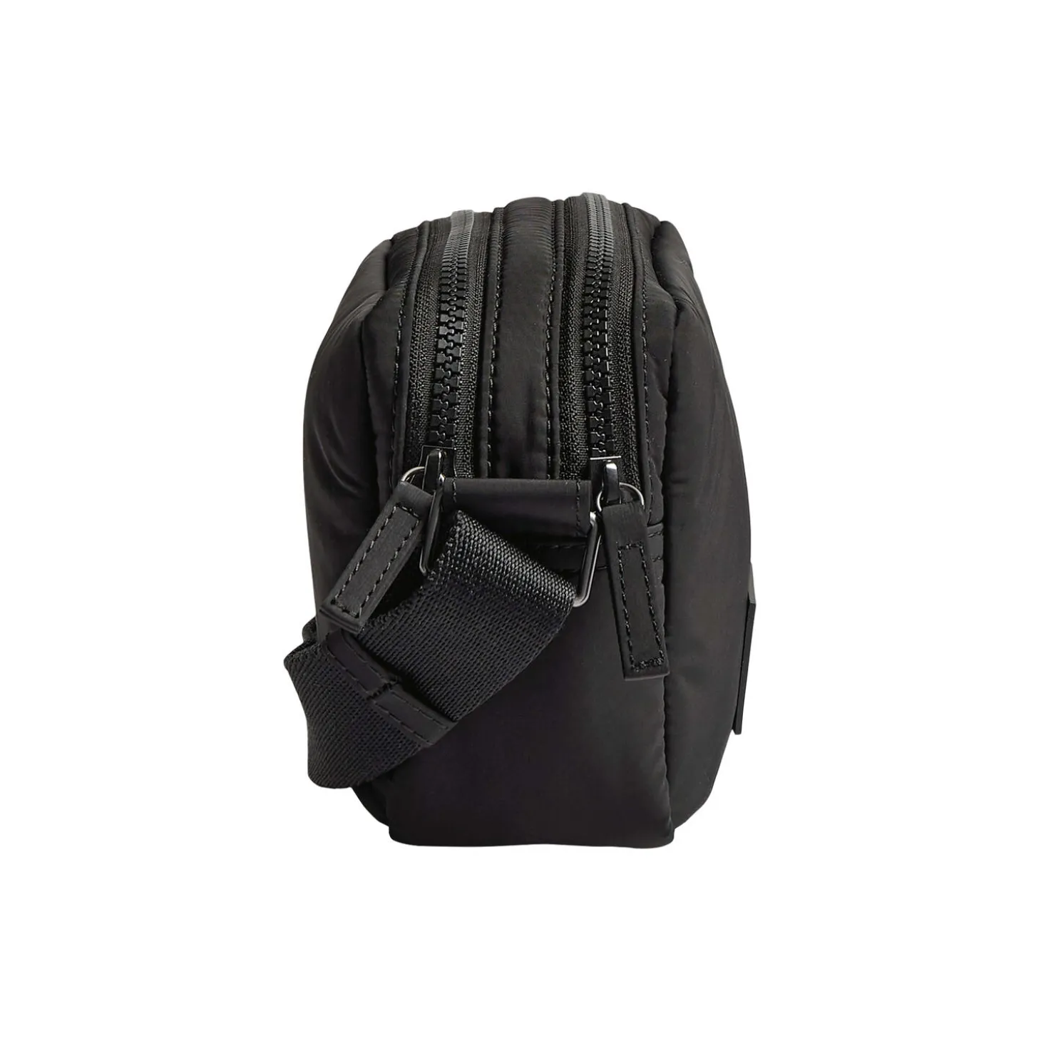 Less Crossbody bag fra Markberg er en smart og praktisk puffer taske som er produceret i 100% genanvendt polyester. Tasken er vandafvisende og lavet i et ekstra slidstærkt materiale. Tasken har to praktiske rum som lukkes med lynlås. Denne Crossbody er din ideelle rejsepartner, da den netop kan rumme både mobil og pas. Stroppen på tasken kan justeres i længden. Markberg logoet på fronten er lavet i vegansk silikone, hvor der ikke er brugt animalske materialer. Taskens foer er 100% genanvendt polyester. Mål: 19 cm x 13 cm x 7 cm