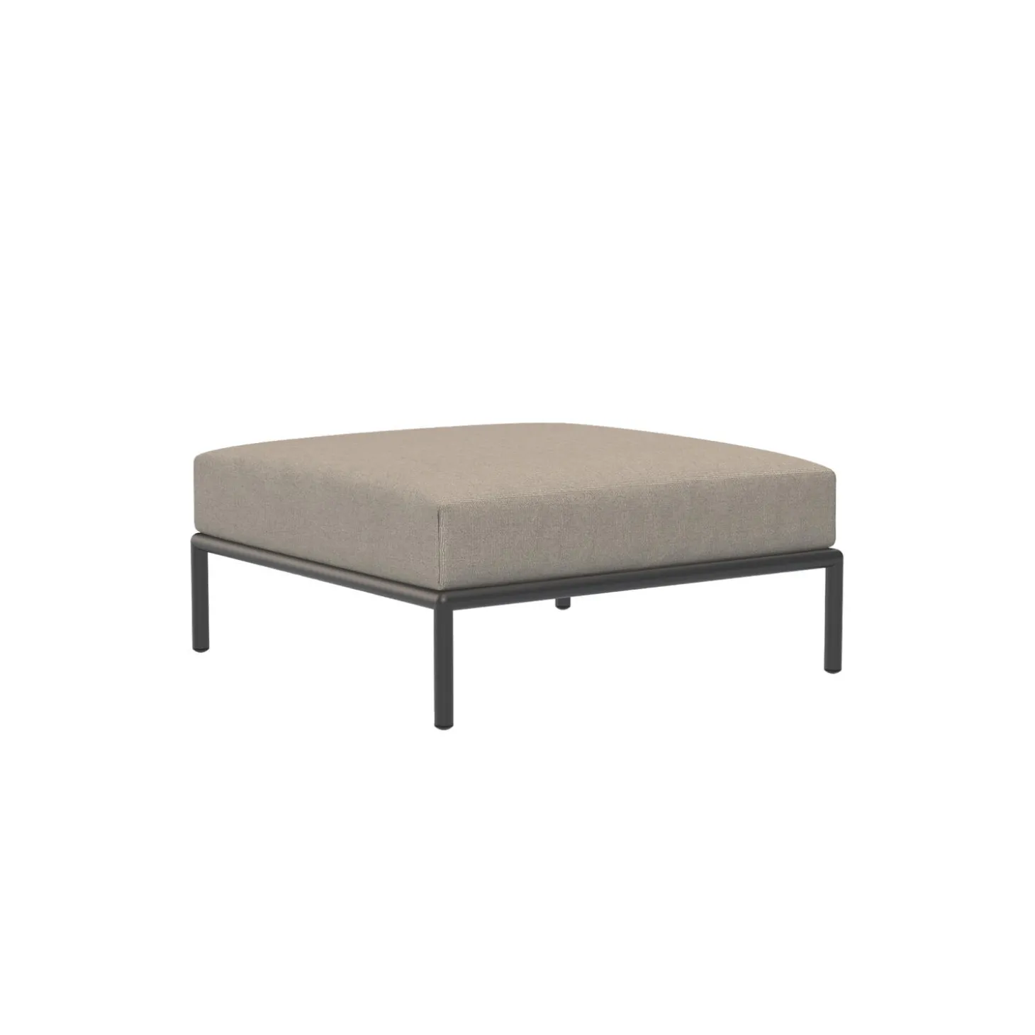 LEVEL2 Ottoman med polstring i Sunbrella Heritage Ash tekstil og stel i pulverlakeret aluminium fra HOUE. Farve: Sunbrella Heritage ash. Mål: H: 38 x L: 81 x B: 81 cm. Siddehøjde: 38 cm. Design: Henrik Pedersen.