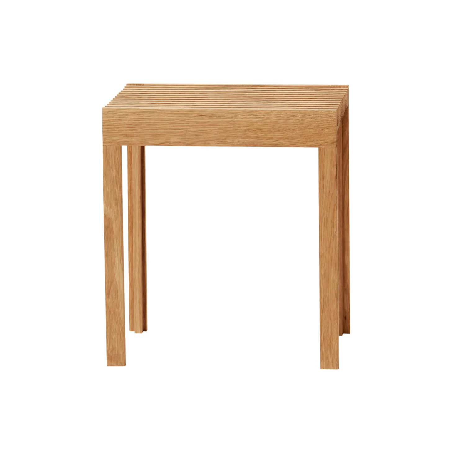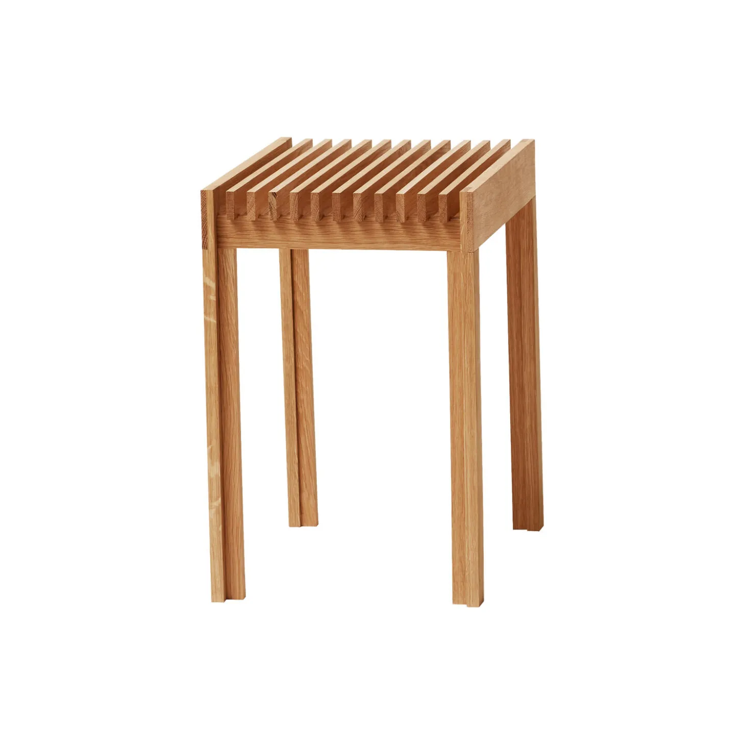 En alsidig og ultralet skammel, der kan fungere som ekstra siddeplads, elegant designobjekt eller sidebord. Det elegante letvægtsdesign går ikke på kompromis med kvaliteten, og skamlen er usædvanligt stærk og solid. Et møbel med fint detaljeret snedkerarbejde og trælister i minimalistisk repetition. Fremstillet af certificeret lokalt europæisk massivt træ. Vægt: 2,5 kg.