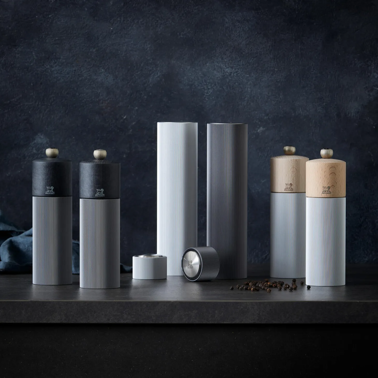 Den stilfulde Line-kværn fra Peugeot er det perfekte og ultramoderne valg til spisebordet. Toppen er af PEFC-certificeret træ og kroppen af aluminium med smalle riller, en raffineret kombination med en unik grafisk visuel effekt. Kværnen har Peugeots livstidsgaranterede kværnemekanisme, og malefinheden justeres med knappen på toppen af kværnen – jo mere skruen er strammet, jo finere males der, og omvendt.