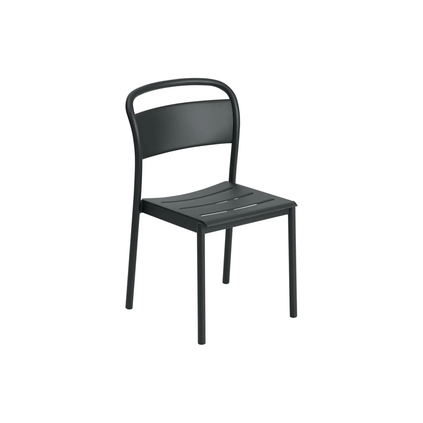 Linear Steel Side Chair from Muuto. The Linear Steel Side Chair is designed with clean, elegant lines and subtle details for a modern expression. Uniting invitingly organic shapes with extensive comfort and long-lasting qualities, the Linear Steel Side Chair is an outdoor chair without any compromises. It is defined by its contrasts; the clean lines of its seat and front legs in combination with the ergonomic, smoothly curved backrest for an enveloping comfort. The Linear Steel Side Chair is rationally designed in the way in which its seat is part of the apron, making for less material use in the production phase while making for a strong, durable design.