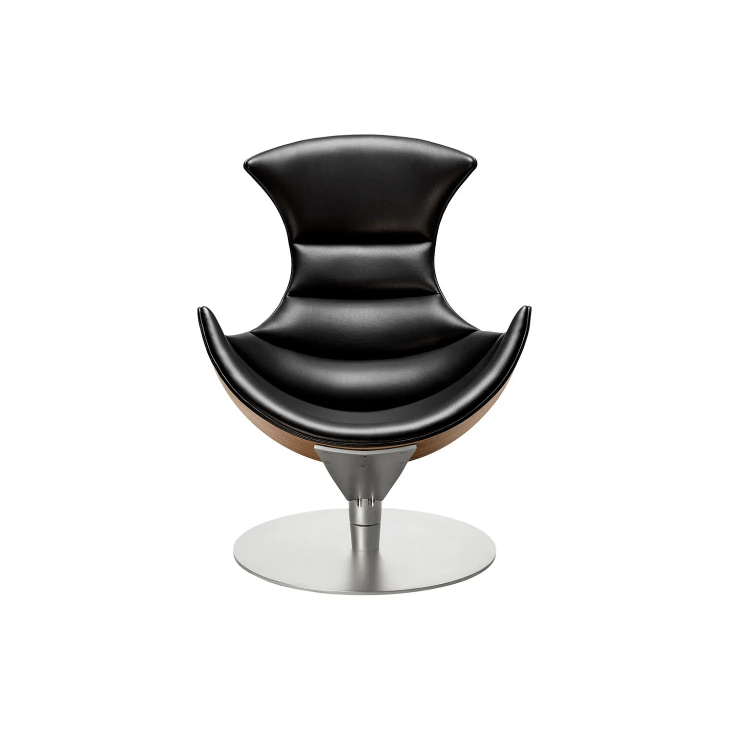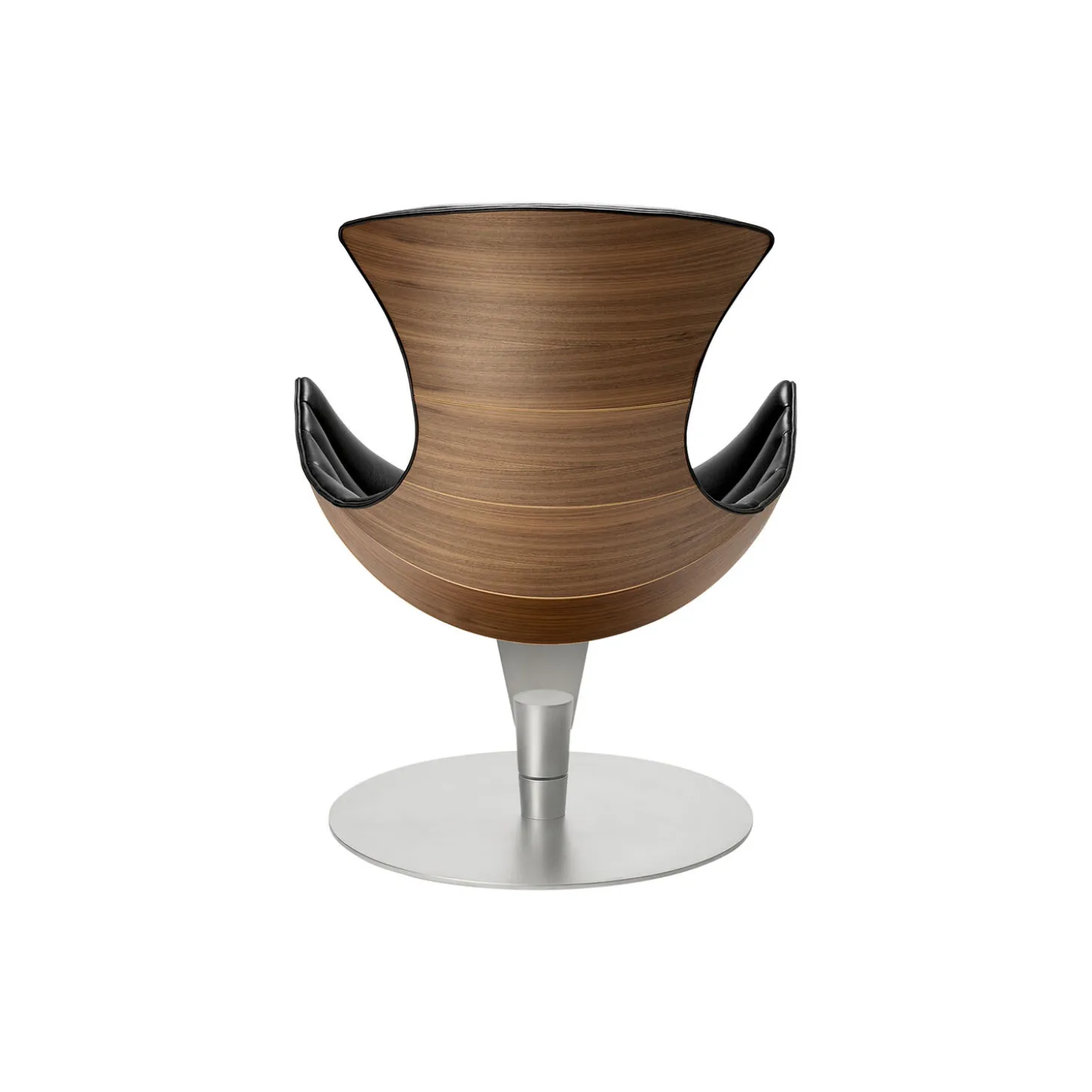 - Materiale: polstring i Paris Passion 539 semi-anilinlæder af Sørensen Leather, skal i matlakeret valnød og base i satinforkromet stål