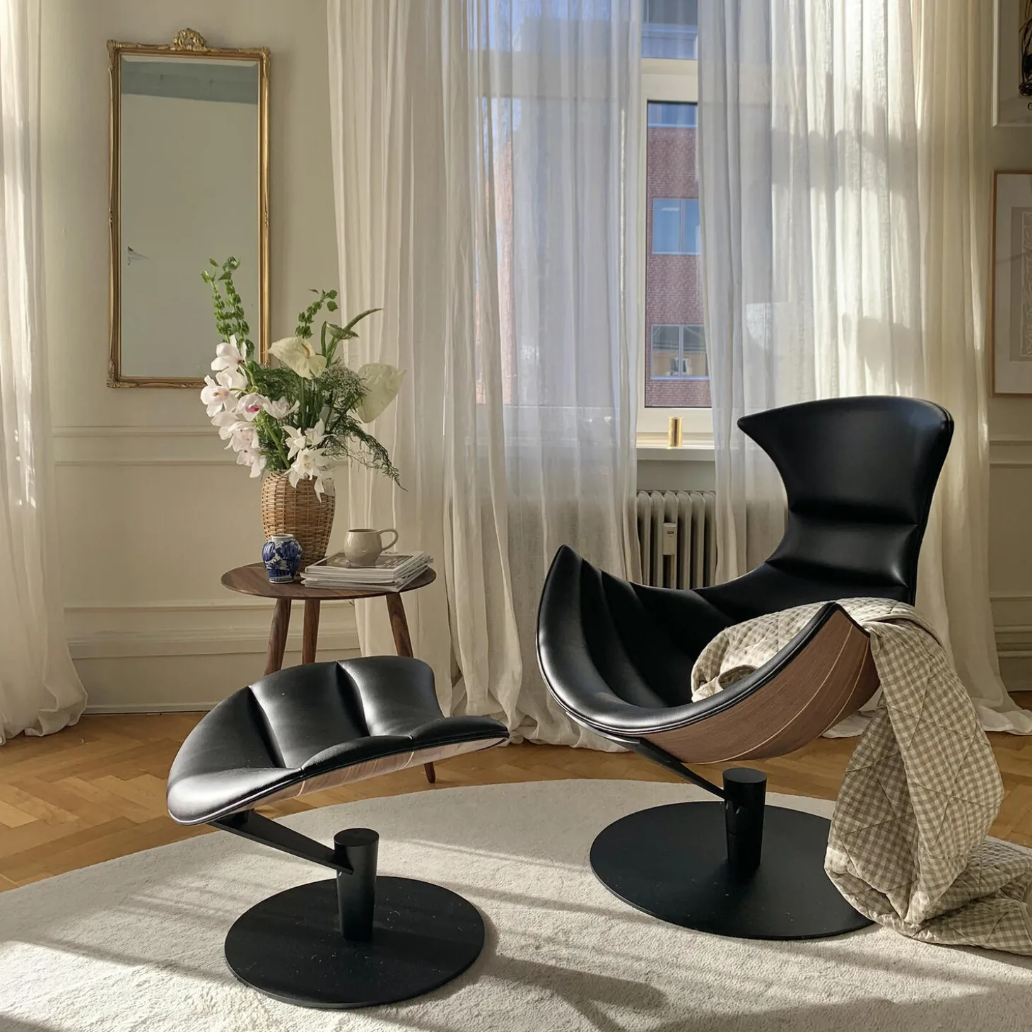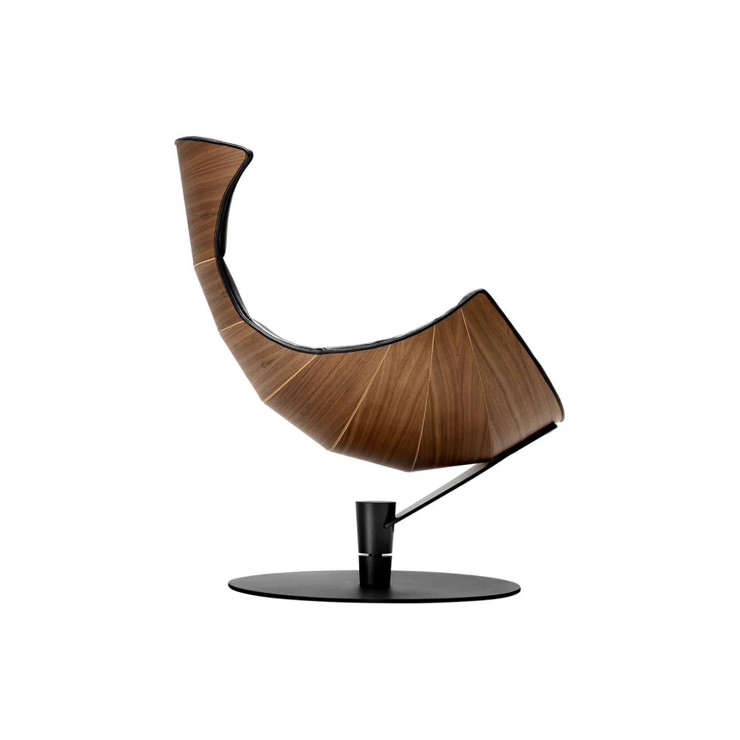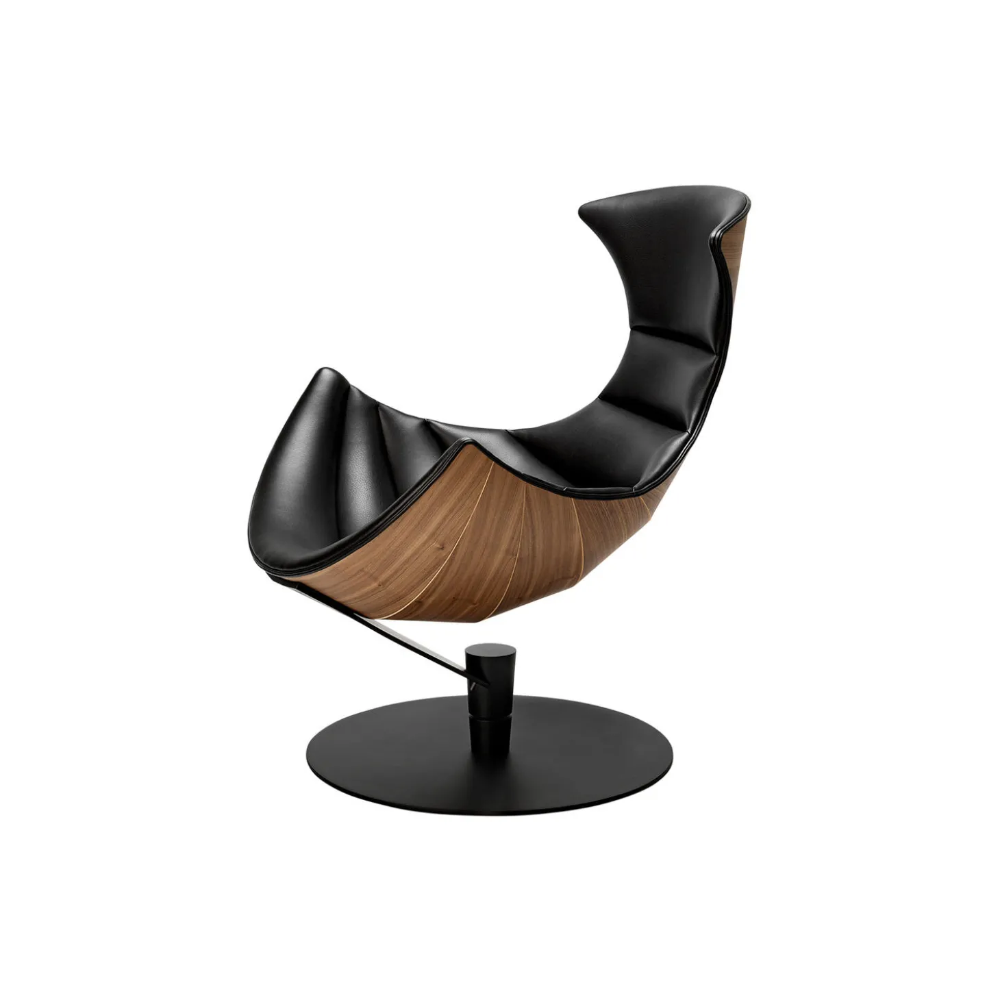 - Materiale: polstring i Paris Passion 539 semi-anilinlæder af Sørensen Leather, skal i matlakeret valnød og base i pulverlakeret stål