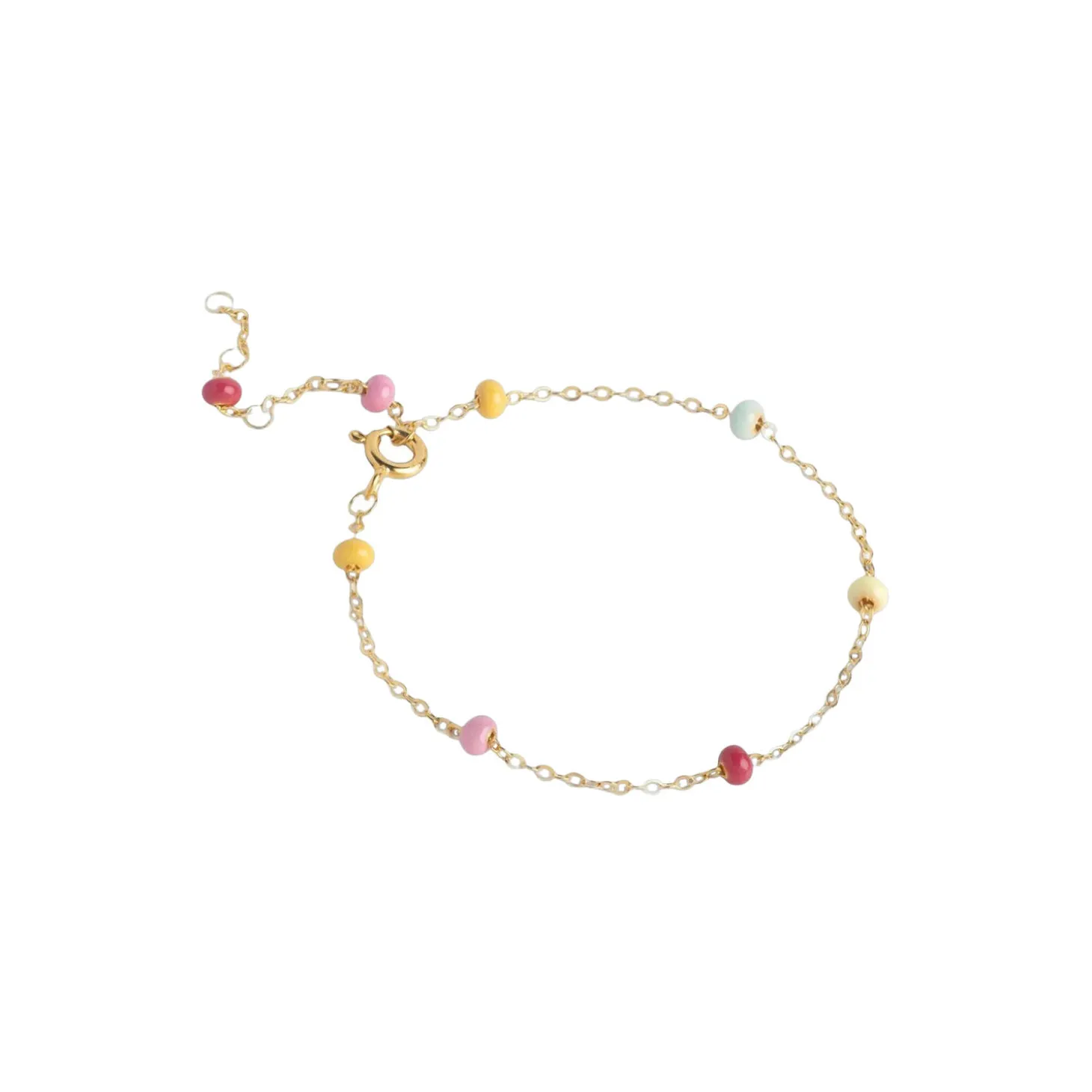 Lola armbånd er en fin kæde med små farvede emaljer. Armbåndet giver en fin farverig detalje og kan perfekt kombineres med flere armbånd. Findes i flere farver. Obs: Vær opmærksom på IKKE at bære vores Lola styles i bad, når du sover og for tæt på parfumer og cremer, da emaljen kan ændre farve og struktur.