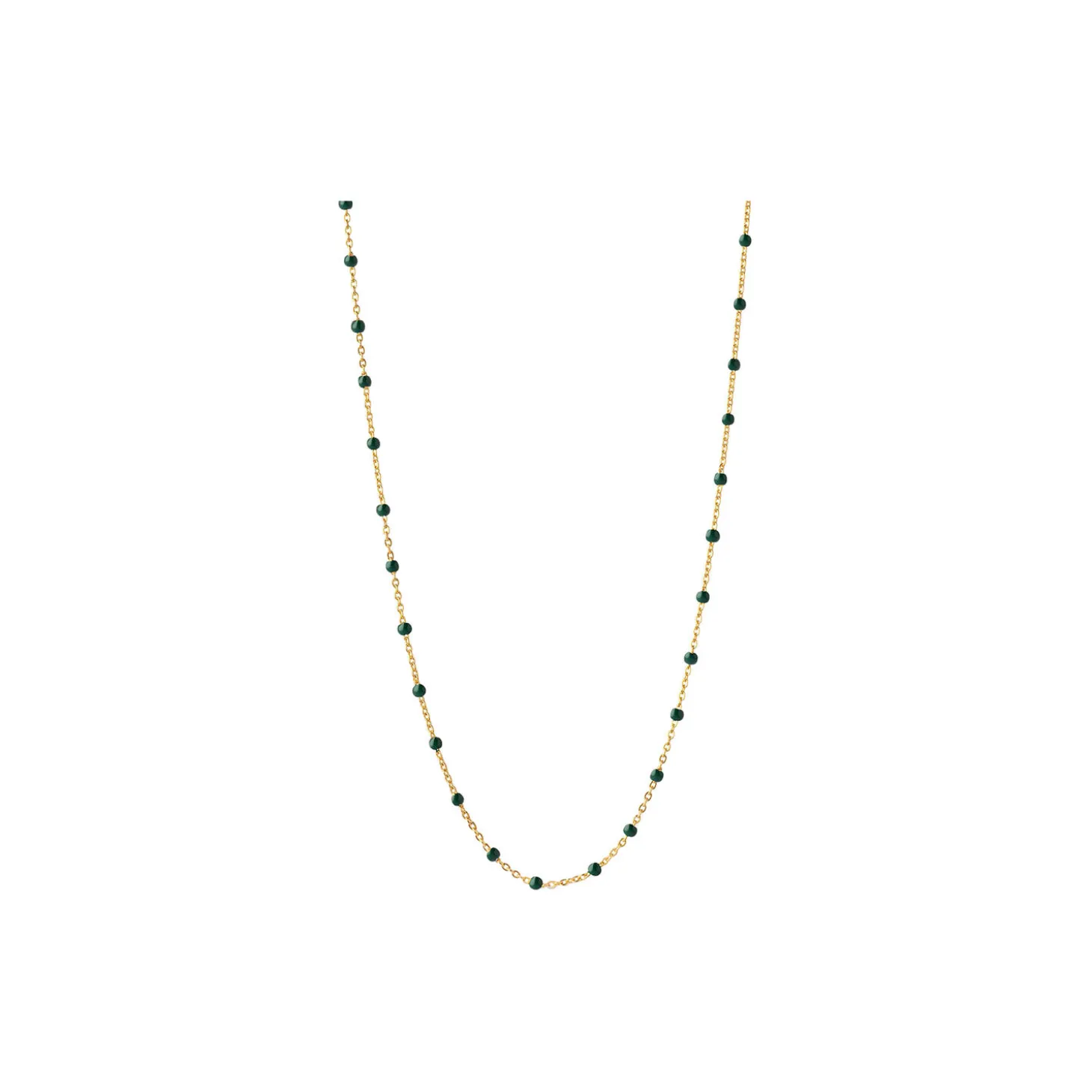 Lola halskæde er en fin kæde med små emaljer. Halskæden giver en fin detalje og kan perfekt kombineres med andre halskæder. Findes i flere farver. Obs: Vær opmærksom på IKKE at bære vores Lola styles i bad, når du sover og for tæt på parfumer og cremer, da emaljen kan ændre farve og struktur.