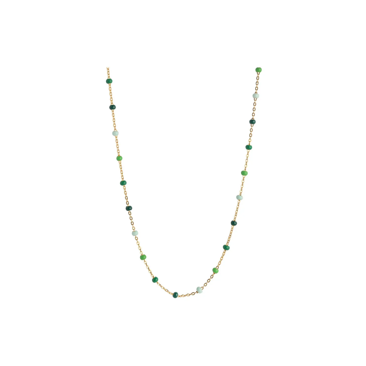 Lola halskæde er en fin kæde med små emaljer. Halskæden giver en fin detalje og kan perfekt kombineres med andre halskæder. Findes i flere farver. Obs: Vær opmærksom på IKKE at bære vores Lola styles i bad, når du sover og for tæt på parfumer og cremer, da emaljen kan ændre farve og struktur.