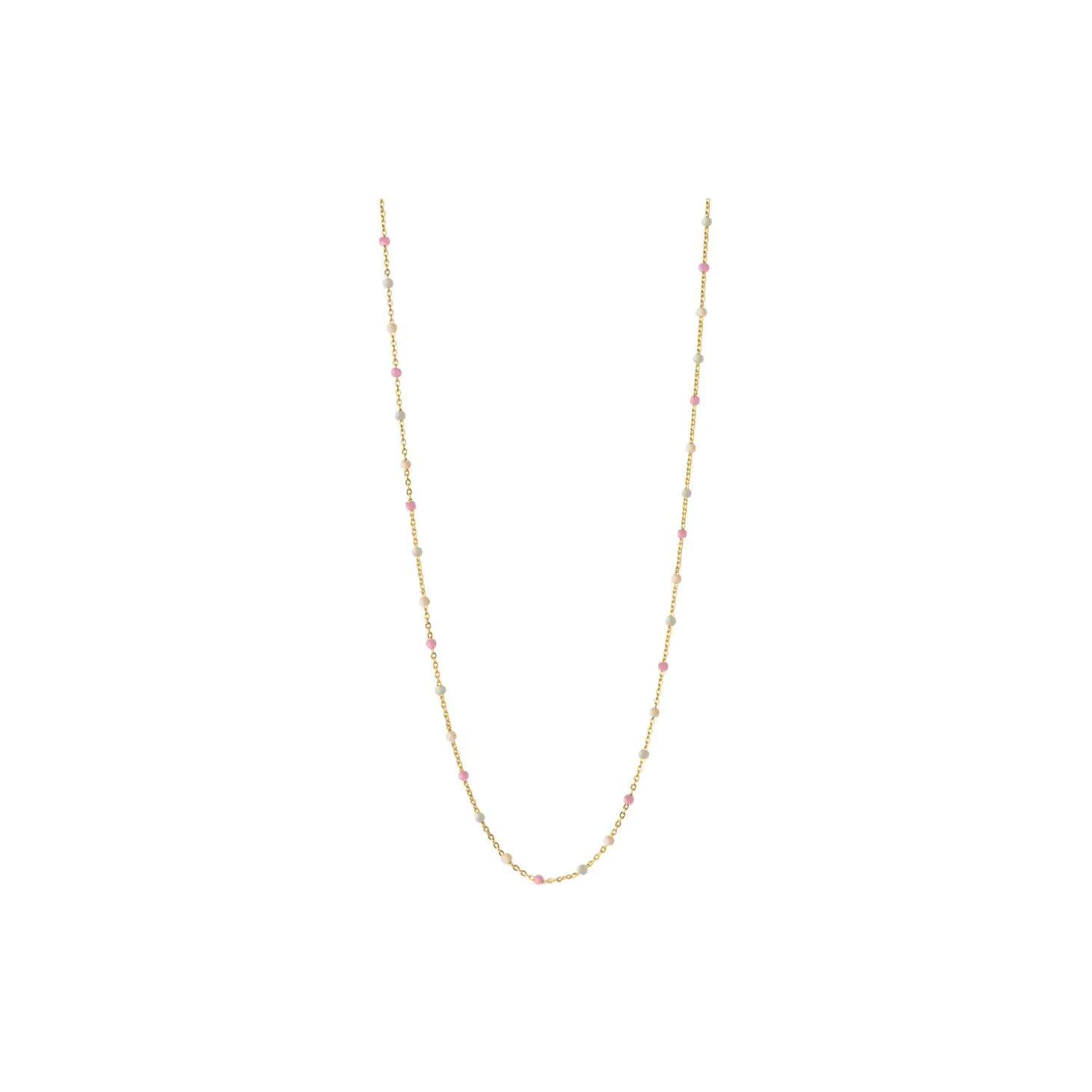 Lola halskæde er en fin kæde med små emaljer. Halskæden giver en fin detalje og kan perfekt kombineres med andre halskæder. Findes i flere farver. Obs: Vær opmærksom på IKKE at bære vores Lola styles i bad, når du sover og for tæt på parfumer og cremer, da emaljen kan ændre farve og struktur.