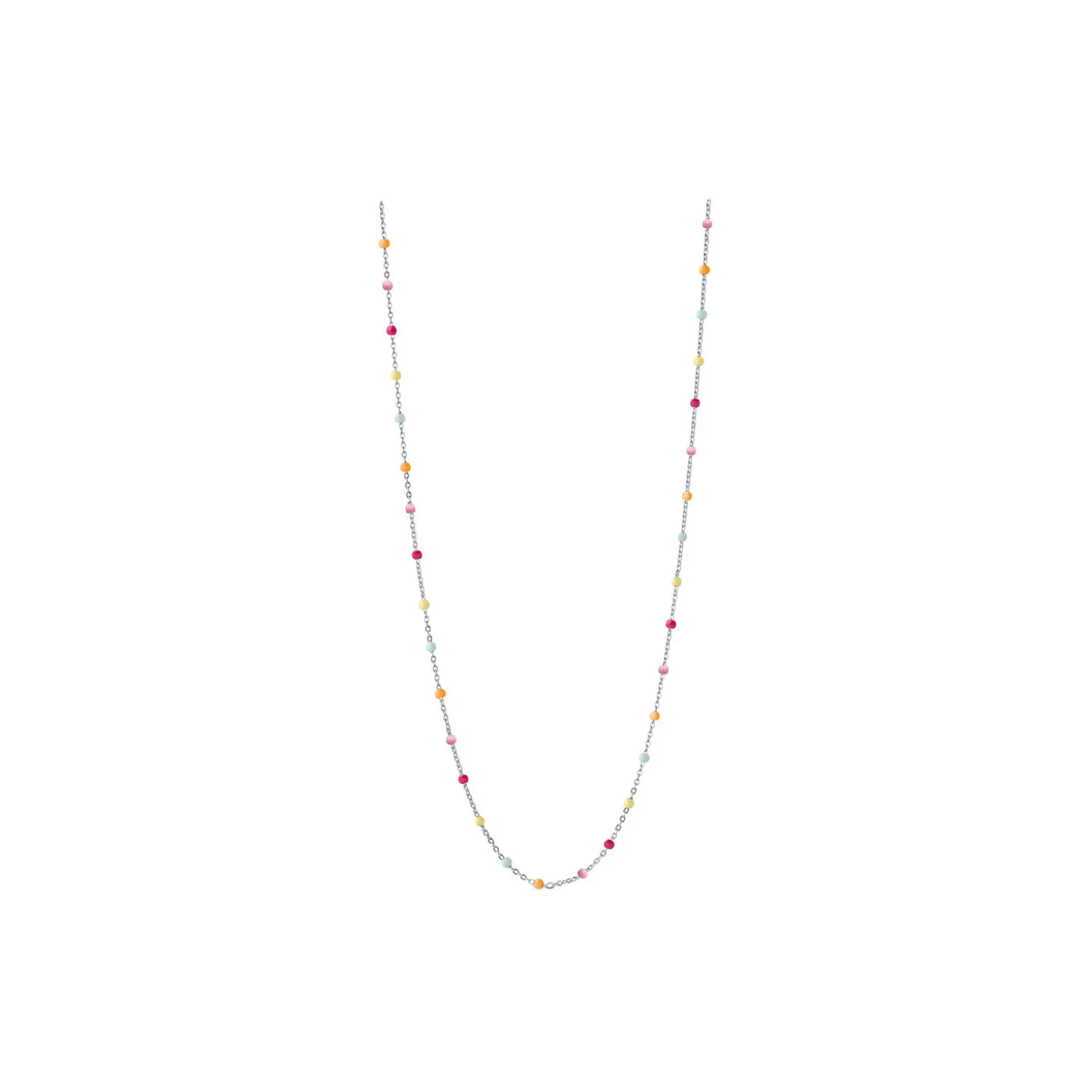 Lola halskæde er en fin kæde med små emaljer. Halskæden giver en fin detalje og kan perfekt kombineres med andre halskæder. Findes i flere farver. Obs: Vær opmærksom på IKKE at bære vores Lola styles i bad, når du sover og for tæt på parfumer og cremer, da emaljen kan ændre farve og struktur.