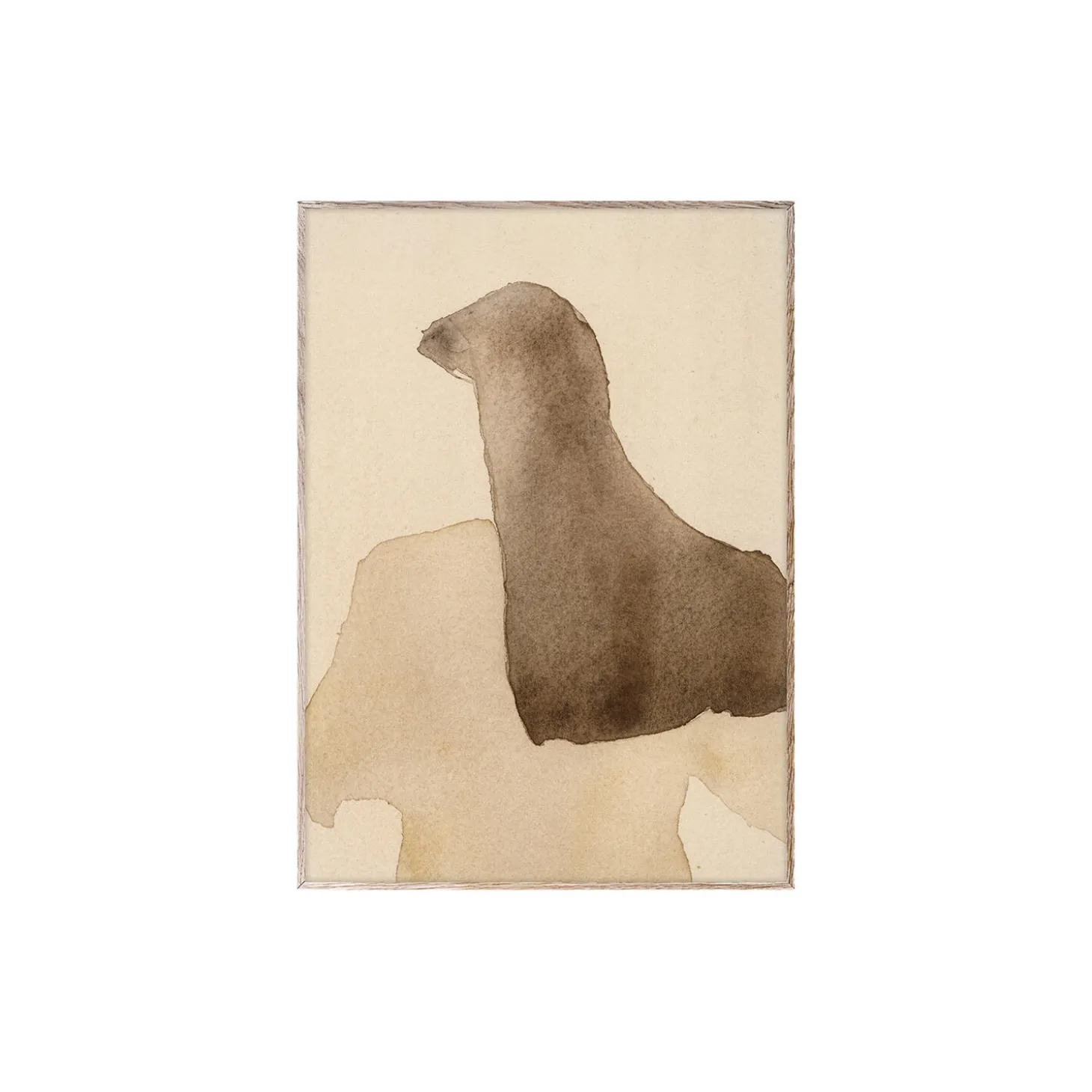 Long Hair by Swedish artist and design Jenny Walhult explores character and depth through simple gesture and soft tones. Set against a textural backdrop, a single figure is formed through the use of negative space – long hair in dark brown and light brown clothes gesturing towards an absent women’s face and body. Her subtle use of water colours creates a composition that is simple yet full of depth and texture. Frame not included.