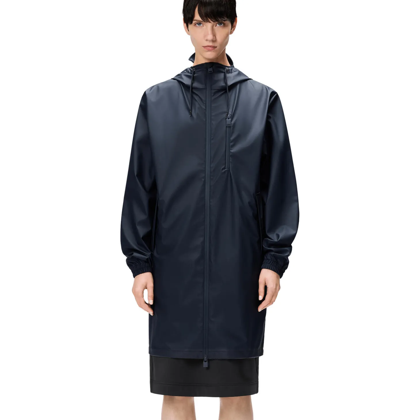 Long Storm Breaker er en unisex-regnfrakke med et længere, men alligevel sporty og moderne design. Denne forhøjede lange regnfrakke giver ekstra funktionalitet i vådt vejr i en minimal silhuet. Den har en tovejs vandtæt lynlås, hætte med snøre og indbygget hætte samt elastiske manchetter. Long Storm Breaker er designet med justerbar, delvis reflekterende snøre forneden for et individuelt tilpasset look. Dobbeltsvejsede forlommer, lynlåslomme på brystet og vejrbestandig hardware gør det til en perfekt regnjakke, der er nem at have med på farten. Ventilationshuller under armene sikrer åndbar komfort. Den vandtætte jakke er skåret af Rains’ signatur PU-stof og har svejsede sømme. Finishen er let og føles glat.