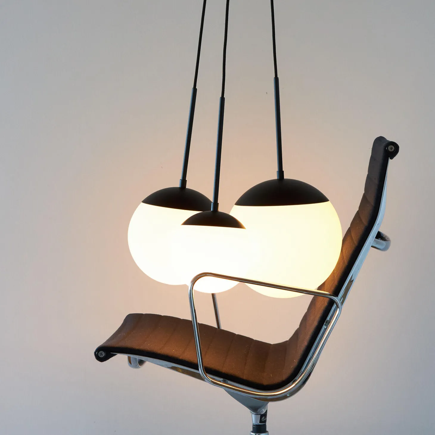 A celestial body comprised of blown tinted glass and suspended from a spun metallic cap, Lord’s minimal spherical form recalls the earliest references to paradise – once lost, but now found.