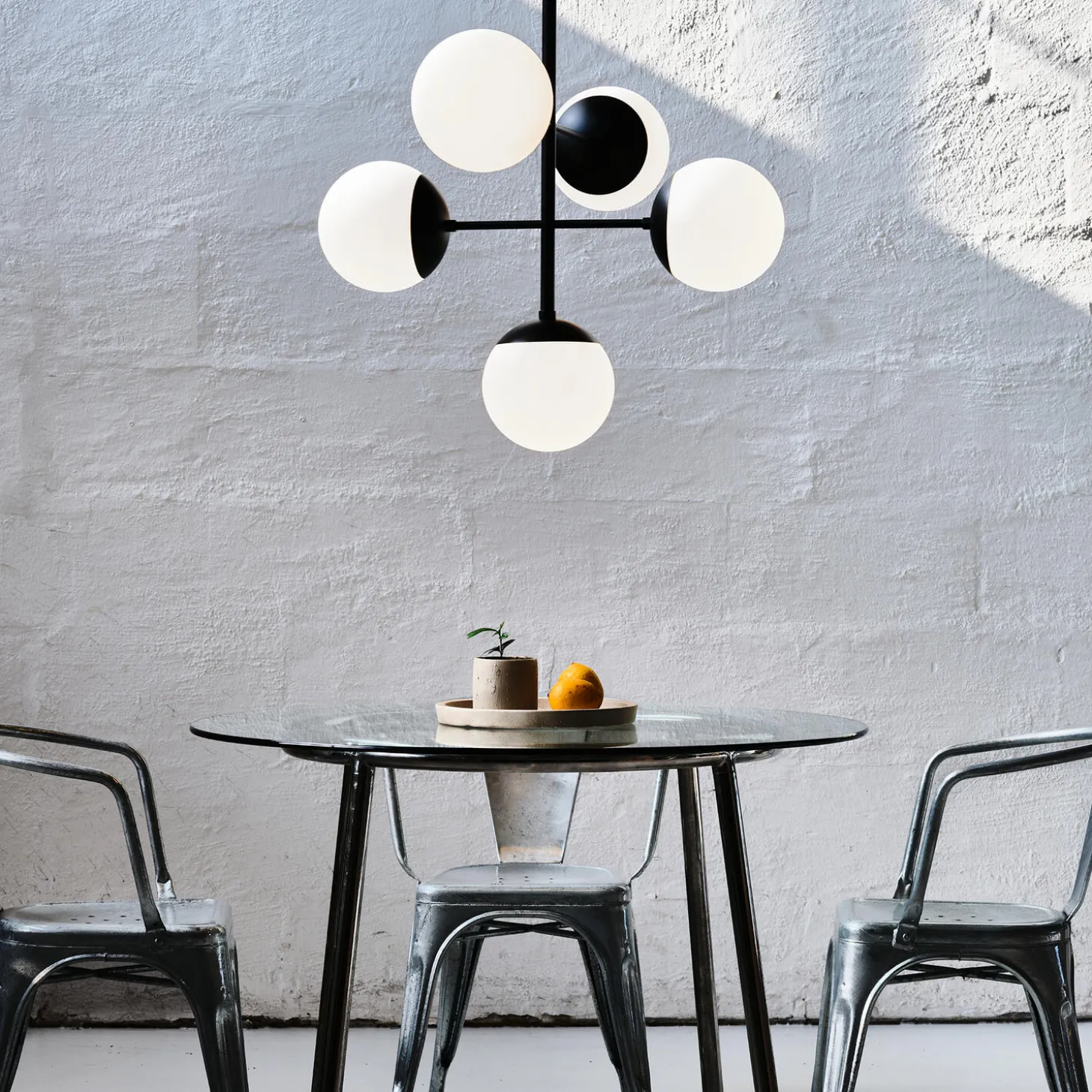 - Materiale: pulverlakeret stål og opalglas