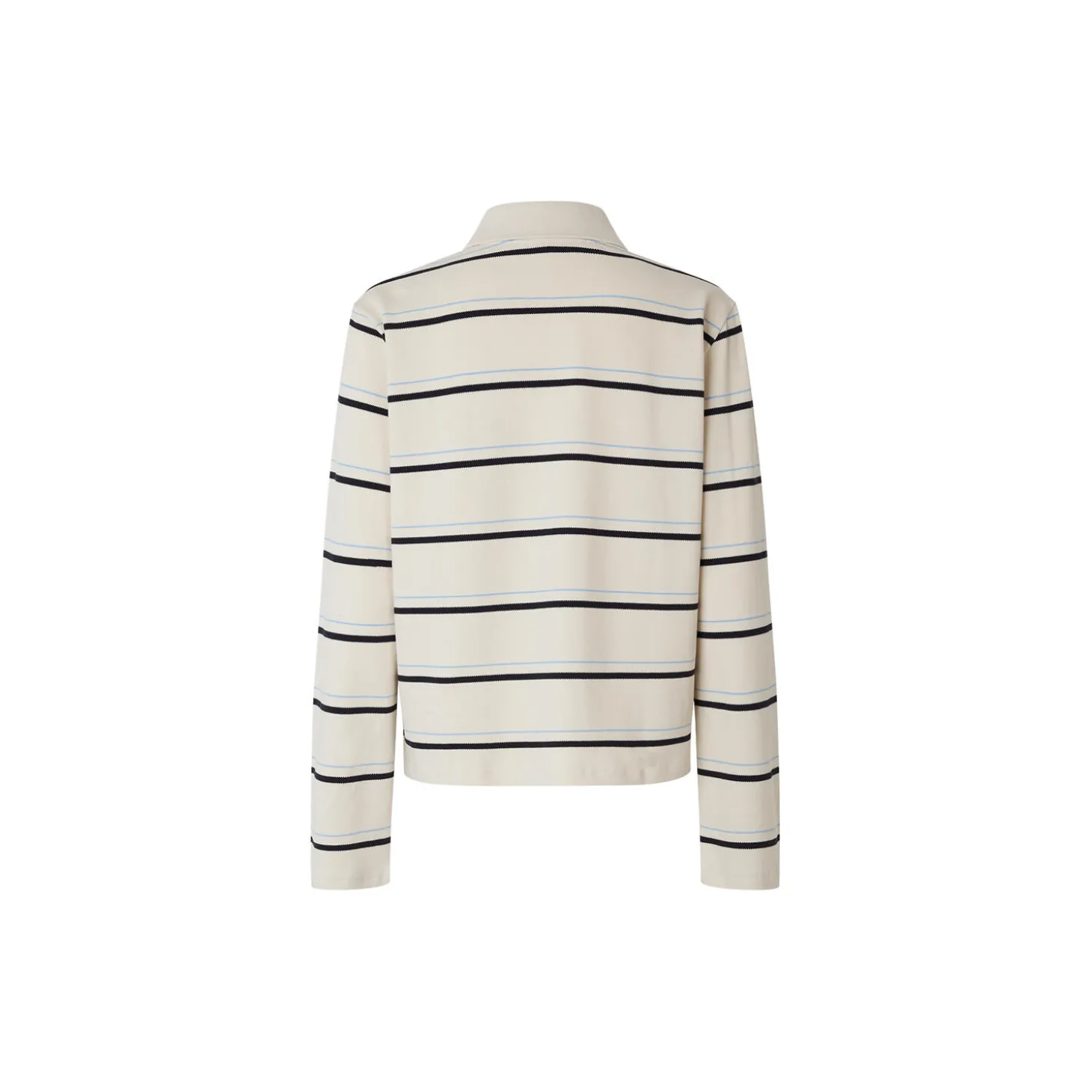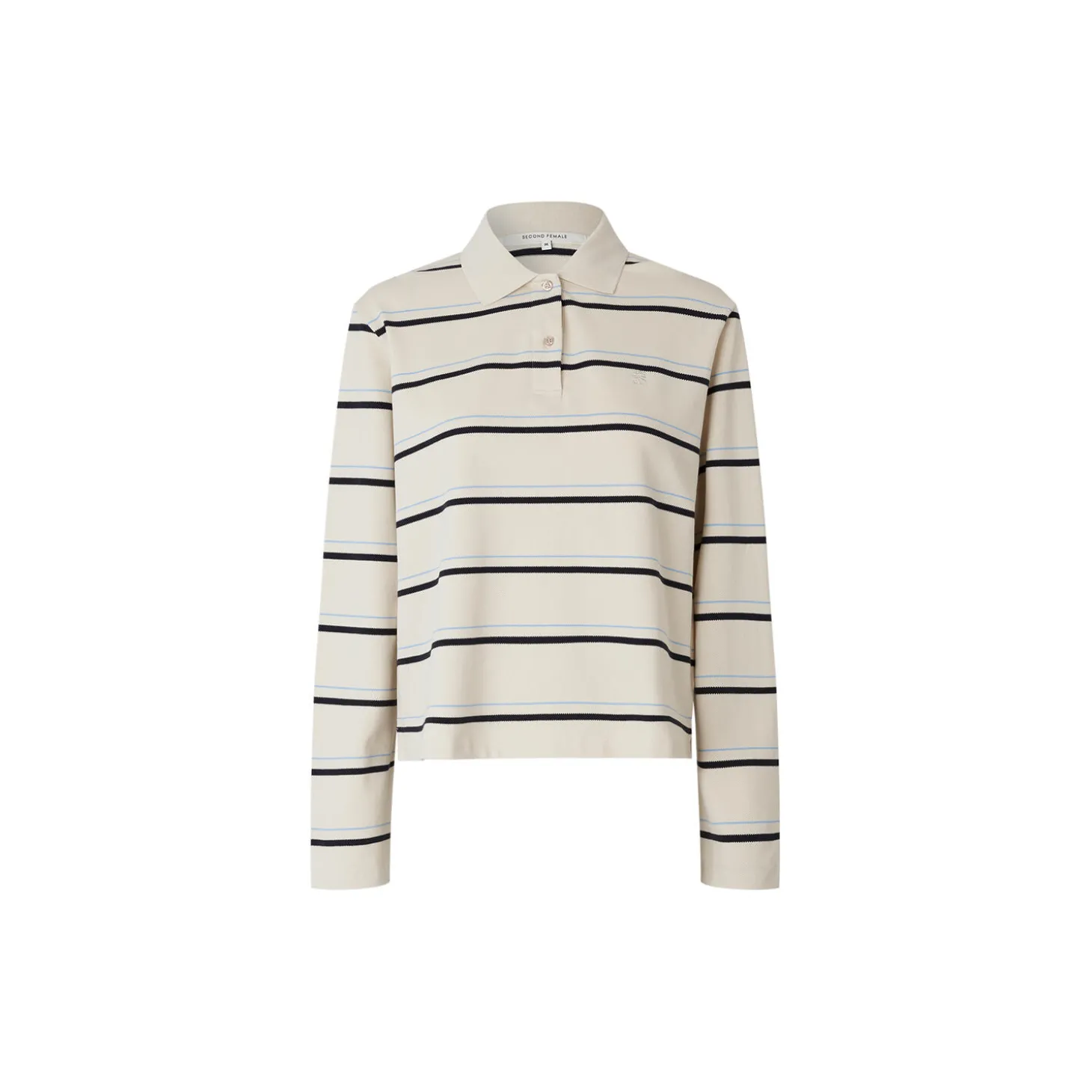 Second Female stribet langærmet polo i en blød strækbar bomuld. Poloen har en krave i rib, knaplukning foran og broderet tonalt logo på brystet. Let faldende skuldre og lange ærmer. Små slidser i siderne forneden. Normal pasform.