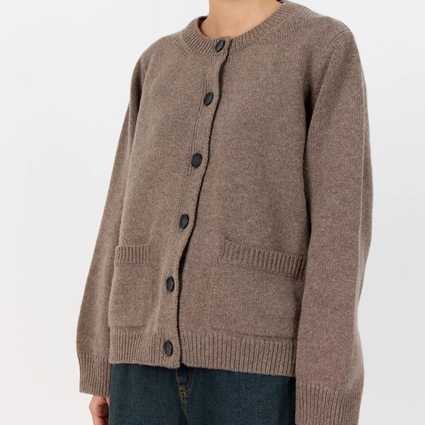 LR-PERLE 9 er en eksklusiv cardigan fremstillet af 90 % merinould og 10 % kashmir. Cardiganen har rund hals, ribbede manchetter, knaplukning foran og lommer foran. Sæt den sammen med jeans for et afslappet look eller med skræddersyede bukser for et mere raffineret udseende.