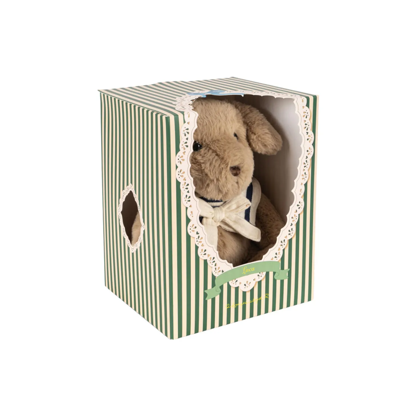 The softest little puppy made for cuddling and comfort. The Luca Sailor Puppy is dressed in a sailor inspired outfit and is perfectly sized for snuggles. Made from 100% polyester. The collar is made of 100% cotton.Suitable from 0m+