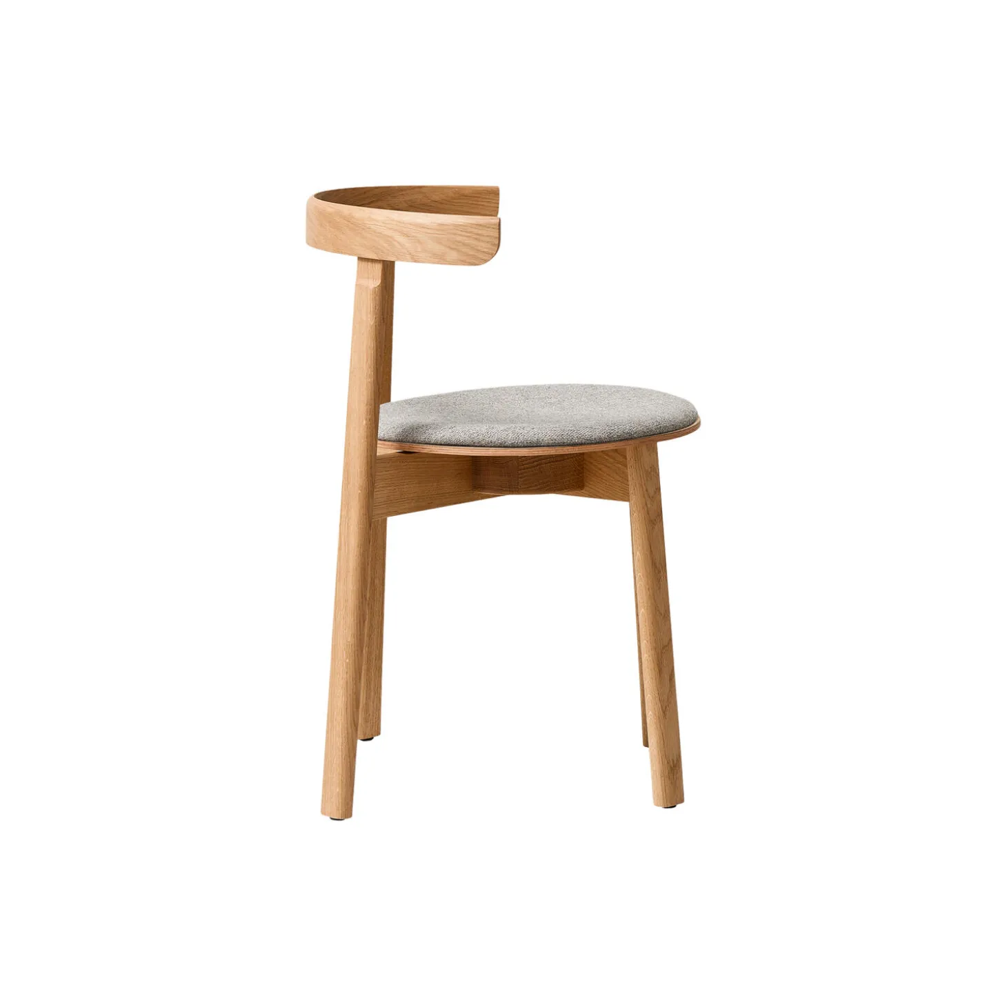 Lunar Chair er en alsidig spisebordsstol i træ med en god balance mellem funktionalitet, æstetik og komfort. Stolens karakteristiske runde ryglæn og integrerede armlæn er skabt af ét stykke massivt træ. Denne form sikrer optimal komfort med støtte til albue og lænd, og muliggør samtidig flere siddepositioner. Træsædet hviler på en krydsformet konstruktion, der giver optimal stabilitet og understøtter det lette udtryk. Den polstrede sædehynde betrukket med Kvadrat Hallingdal 65 tilføjer en lækker fornemmelse og dejlig komfort. Stolen er stabelbar og kan også hænges på bordkanten. Disse funktionelle egenskaber, kombineret med dens elegante, harmoniske udtryk og holdbare konstruktioner, gør Lunar Chair til den ideelle løsning til flere behov -hotel, kontor, hjemmet mm.