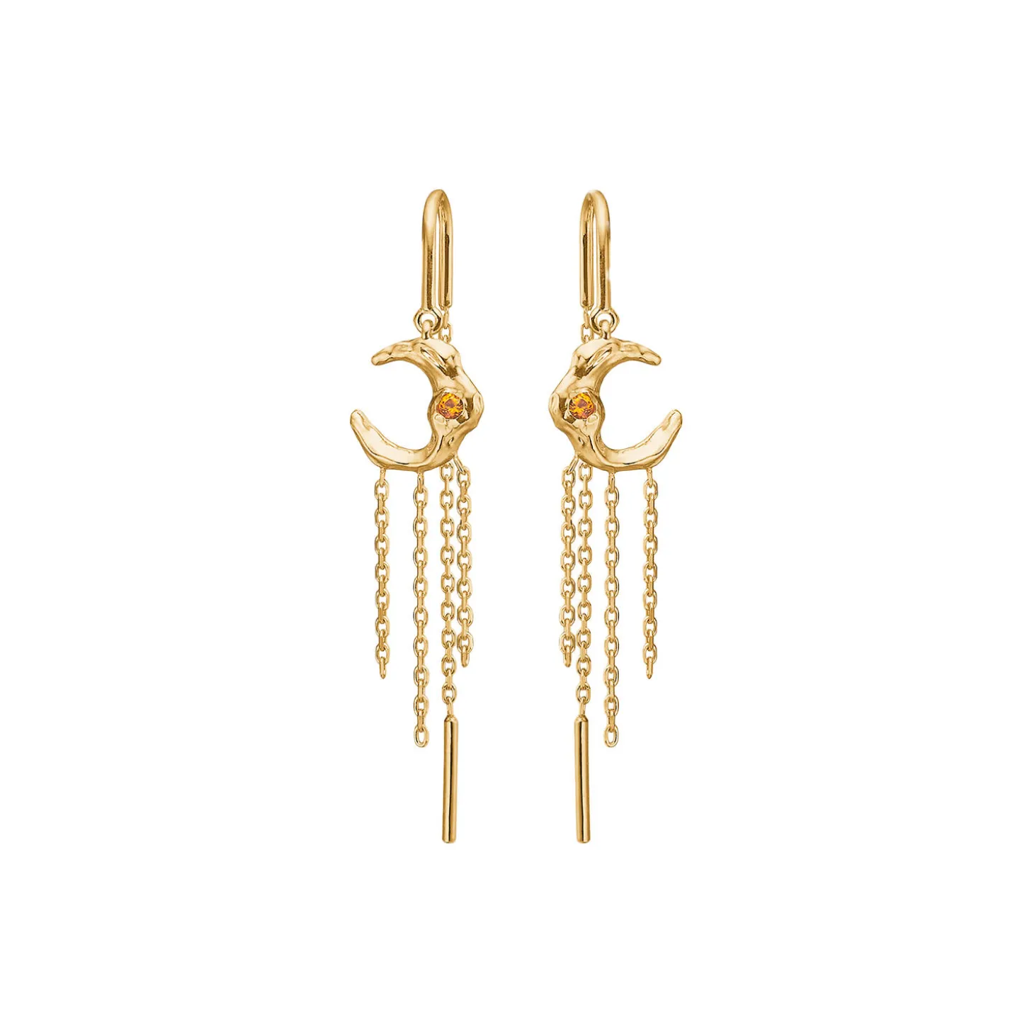 Sølv forgyldt ørehænger Lunar med orange zirkonia fra Studio Z.