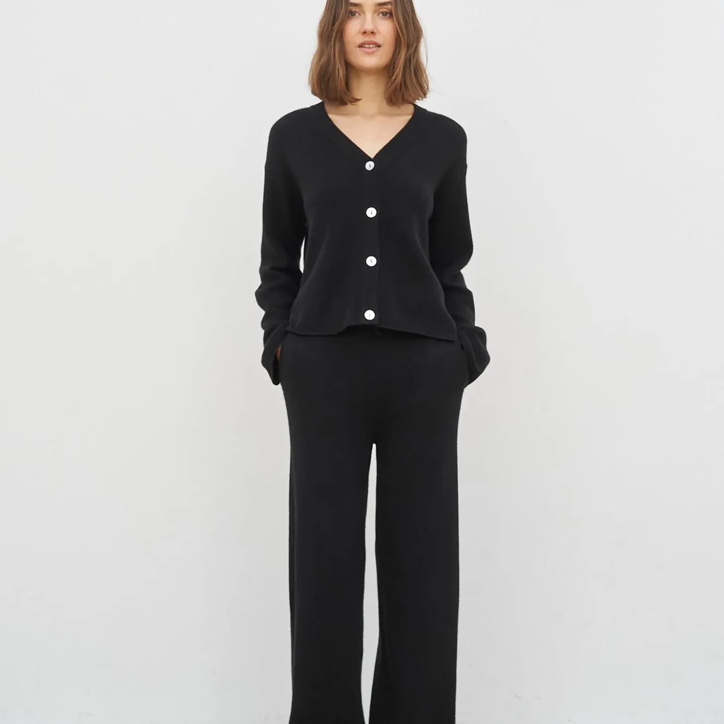 Oplev ren komfort med vores korte Madeline-cardigan. Den er omhyggeligt fremstillet af den fineste kashmir og giver en blød og luksuriøs fornemmelse. Med en klassisk v-hals, ribkant foran og elegante perlemorsknapper er den perfekt til enhver lejlighed. Denne cardigan er en tidløs tilføjelse til din garderobe og tilfører både varme og et strejf af luksus til din hverdagsstil. Certificeret håndlavet og omhyggeligt fremstillet på en gammeldags håndstrikmaskine uden brug af elektricitet i vores sociale værksted i Kathmandu, Nepal.